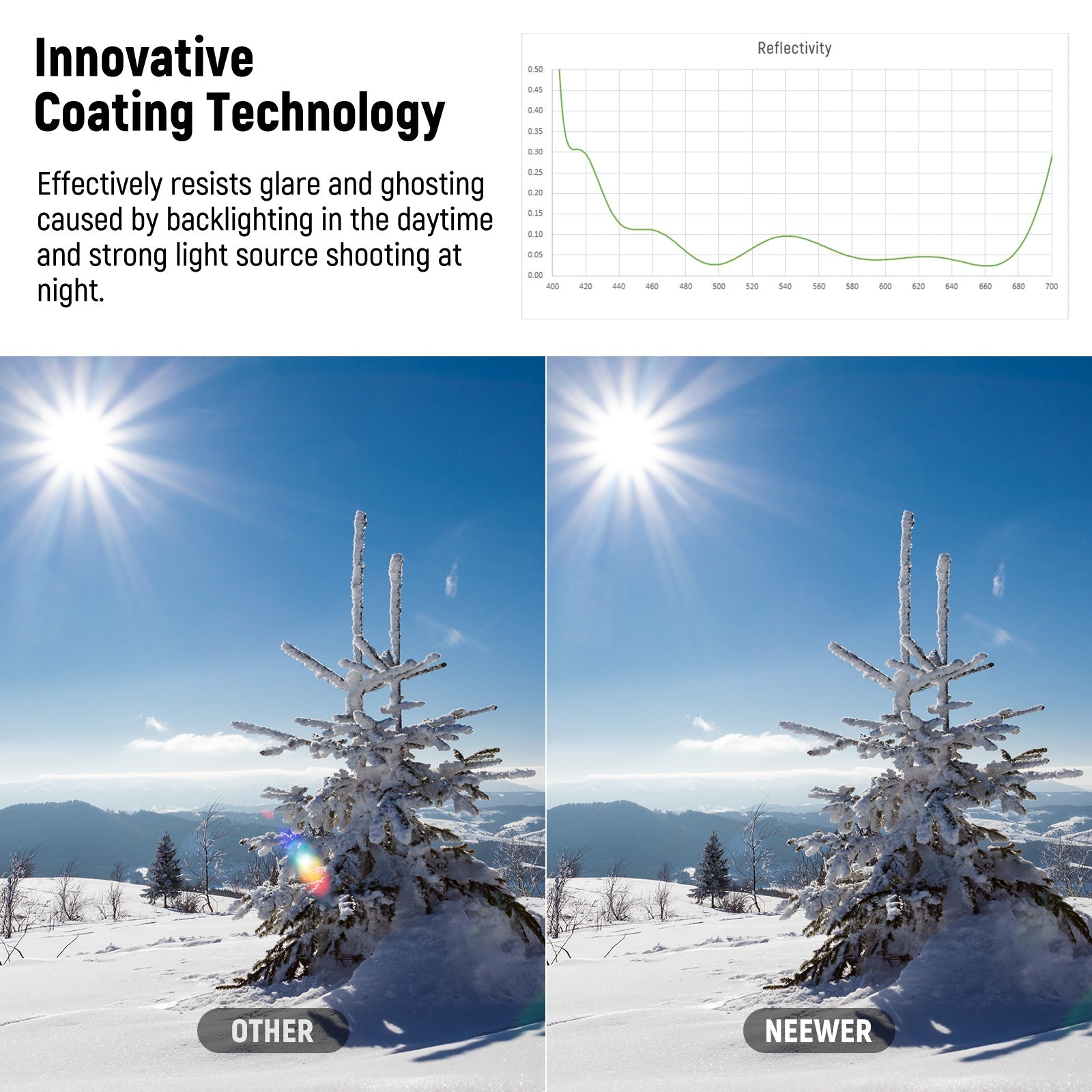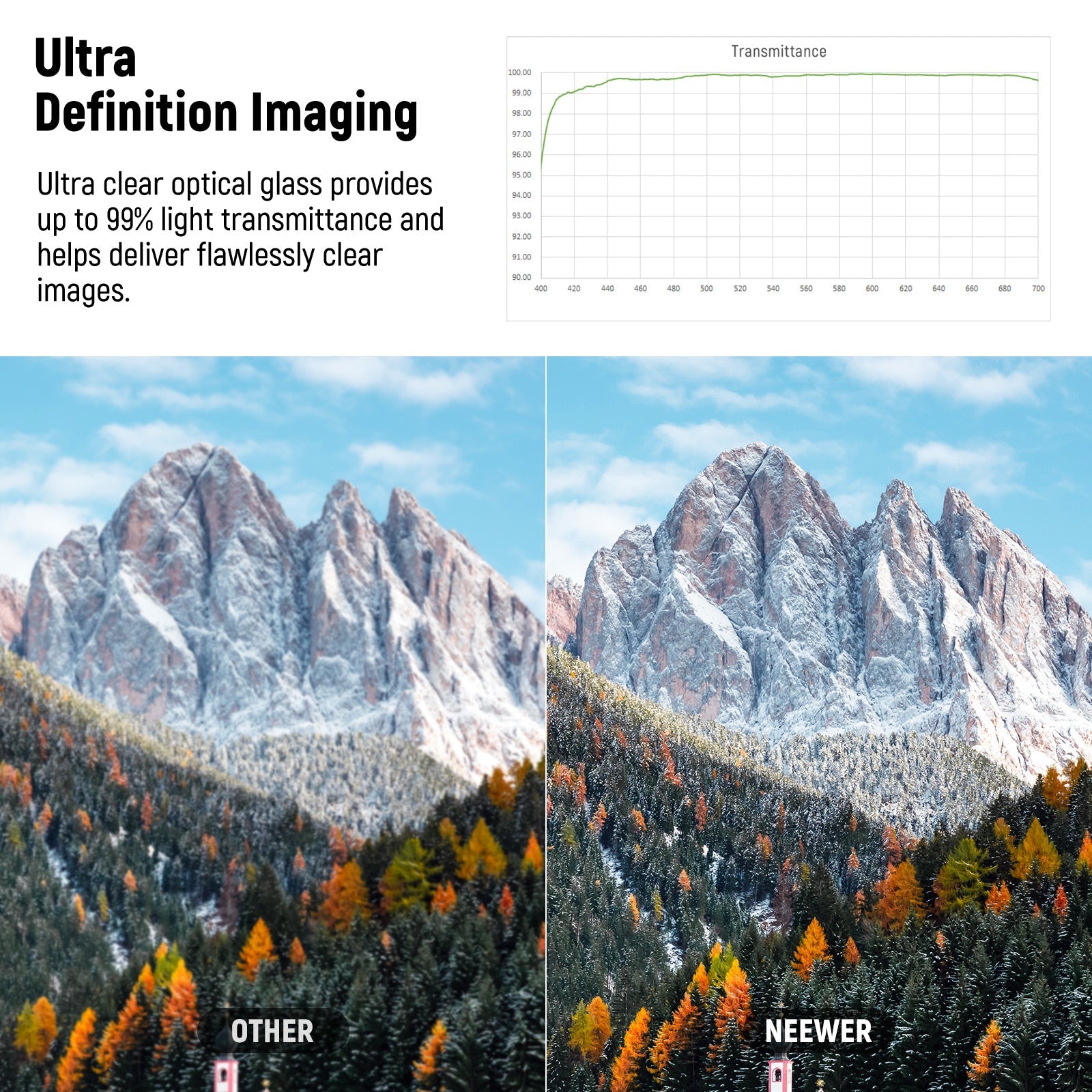 NEEWER camera lens filters offer a range of options, including ND, CPL, UV protection filters, and more. These filters enable you to capture breathtaking images and videos with precise lighting control and accurate color reproduction. Additionally, UV protection filters help protect your lens from damage. Choose a high-quality camera lens filter to elevate your photography.