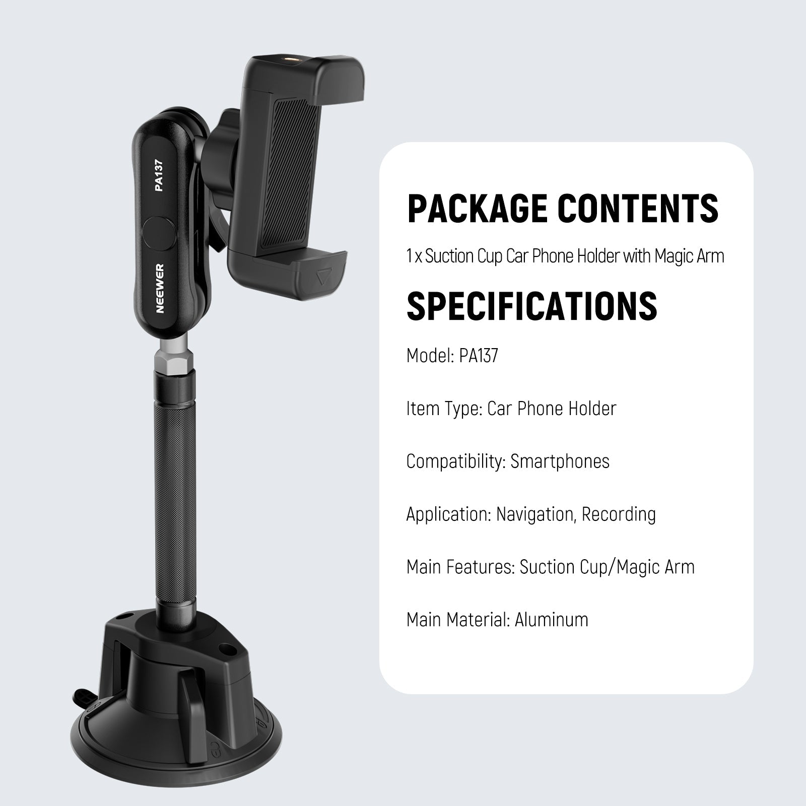 Product details of the NEEWER PA136 Suction Cup Car Phone Holder