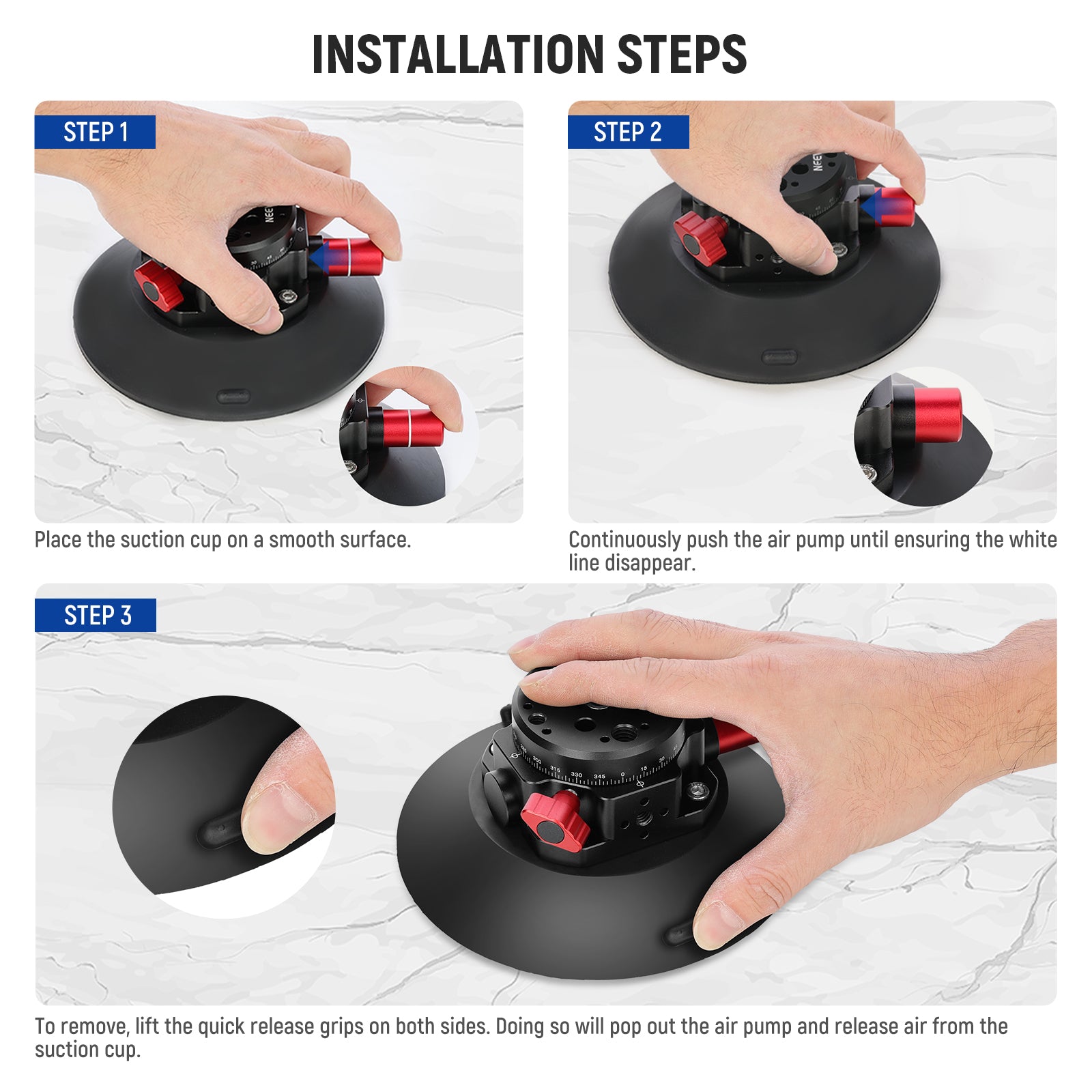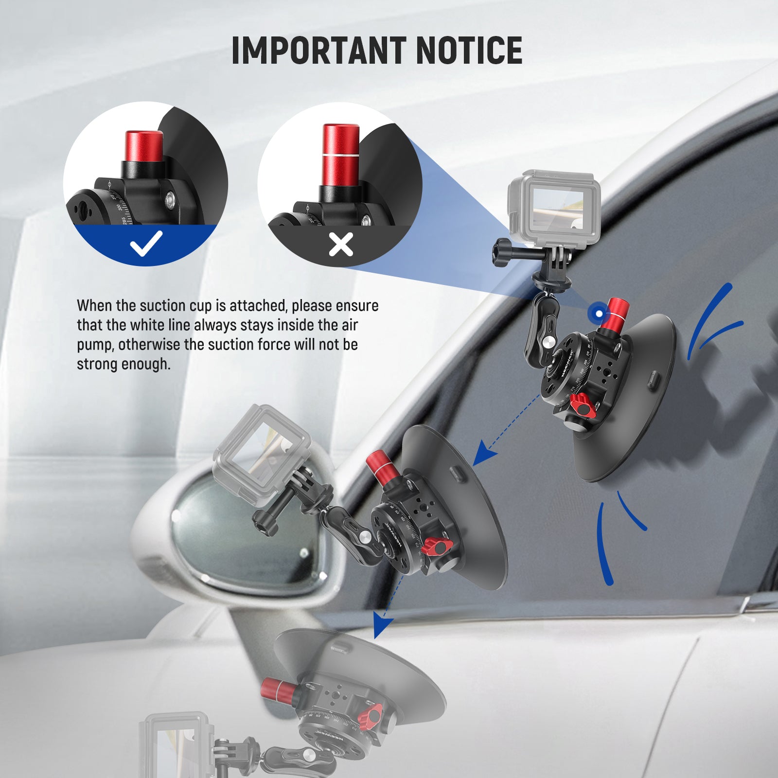 - Powerful Suction Cup with Magic Arm- CA013 is a powerful pump activated vacuum suction cup that can firmly stick to most surfaces and rotate your mirrorless camera, vlog camera, action camera, and smartphone at 360°. An articulating magic arm with two 1/4" ball heads attaches your device to this suction cup and offers flexible mounting positions