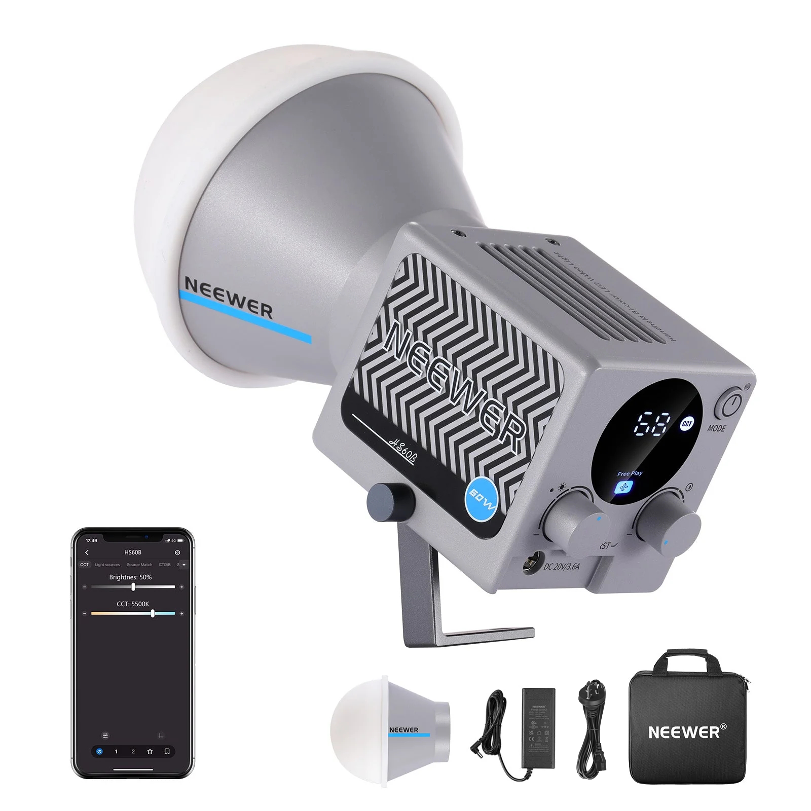 - Physical & Wireless App Control- HS60B features two control dials and a big LCD screen for simple and accurate lighting adjustment. Or, you can use the NEEWER APP to wirelessly set up the light, mesh it with other light models via Bluetooth, unlock more exciting light effects, and upgrade OTA firmware