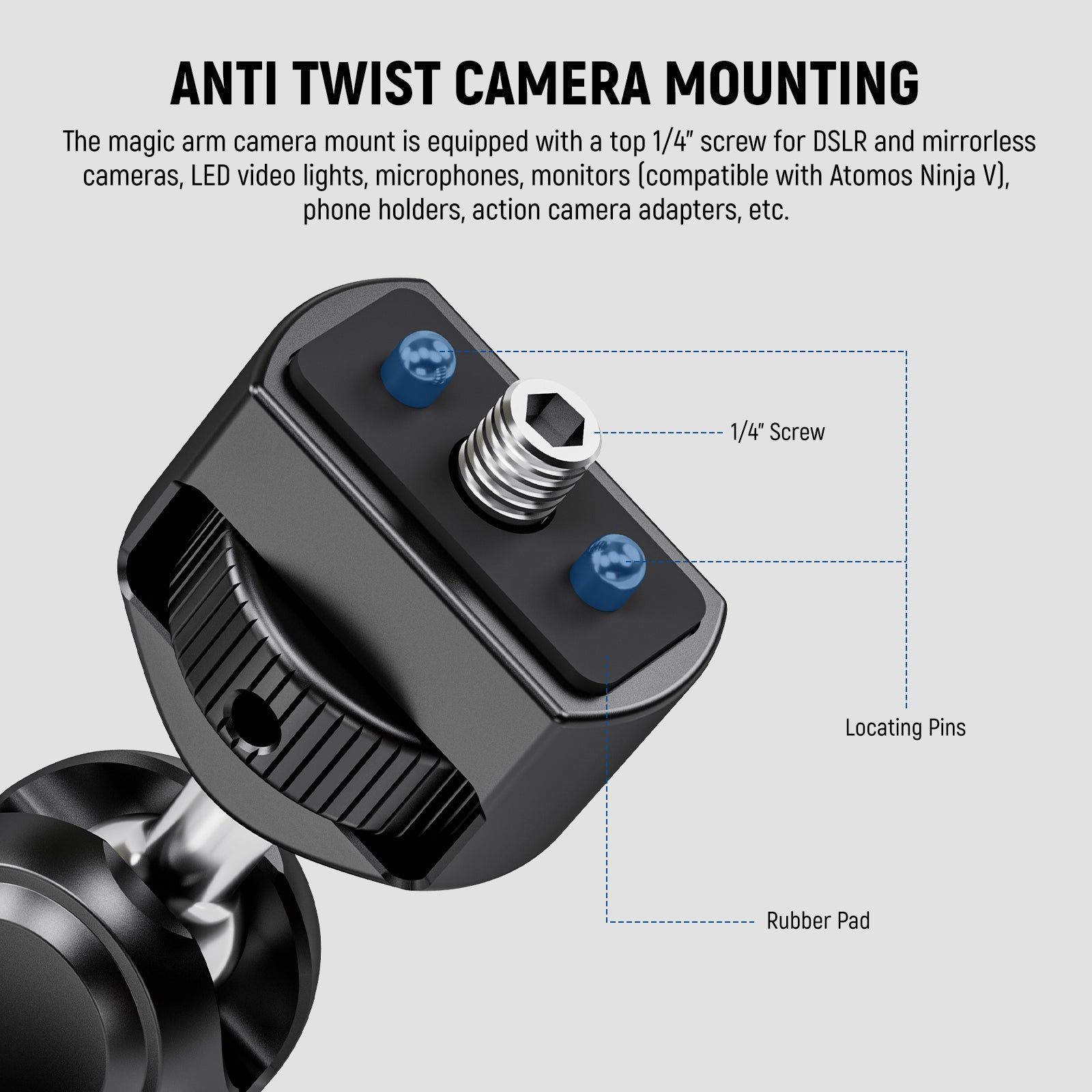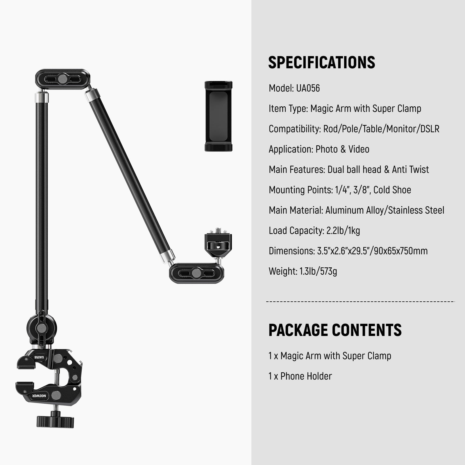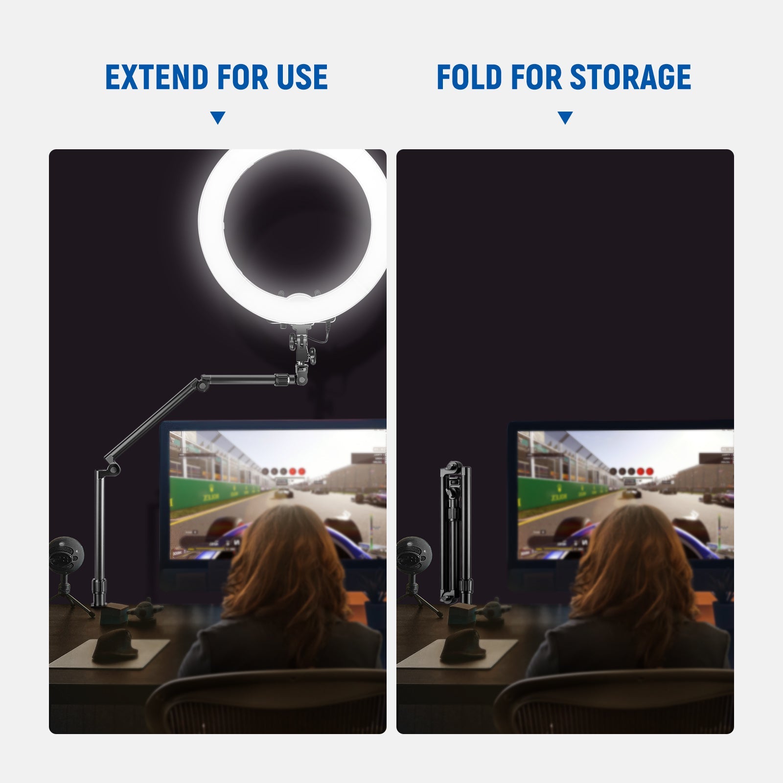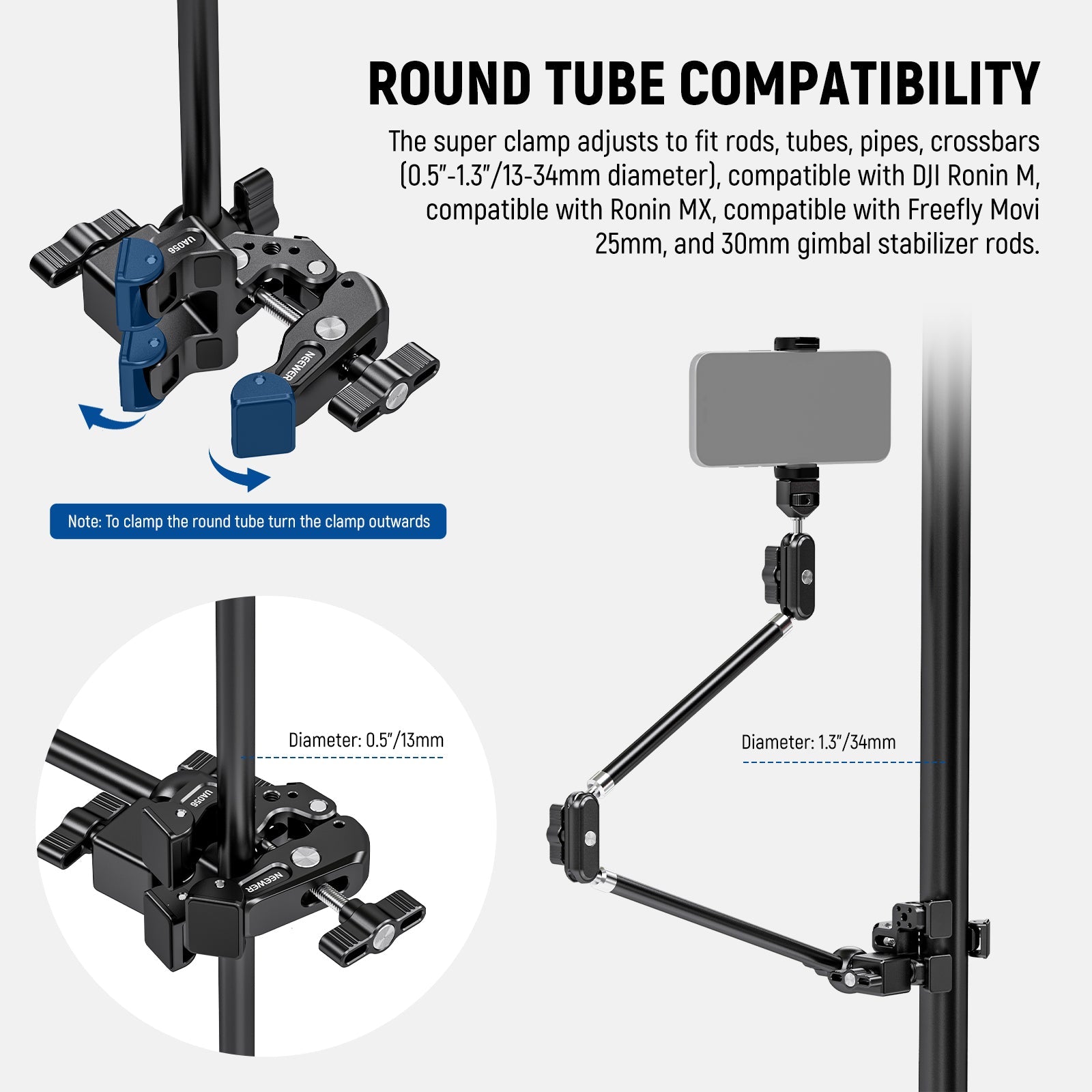 The NEEWER Camera Desk Mount Rig transforms your desk or table into a versatile photography workstation with optimized space usage. These desk mount stands can securely attach various photography accessories and equipment, making them perfect for live streaming, still-life photography, unboxing reviews, remote work setups, and photography lighting. Choose a reliable camera desk mount to support DSLR cameras, phone holders, ring lights, key lights, and more.