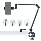 - 360° Dual Ball Heads & 30"/75cm Extended Reach- With a 30"/75cm two section articulating arm and 360° dual ball heads, this camera desk mount allows flexible adjustment with independent locking knobs, ideal desktop rig accessories as table low profile boom arm stand for microphone (mic) podcast, for YouTube TikTok video recording, overhead vlogging, gaming streaming, Zoom calls conferencing, etc. Note: The super clamp and magic arm are permanently attached and cannot be used separately