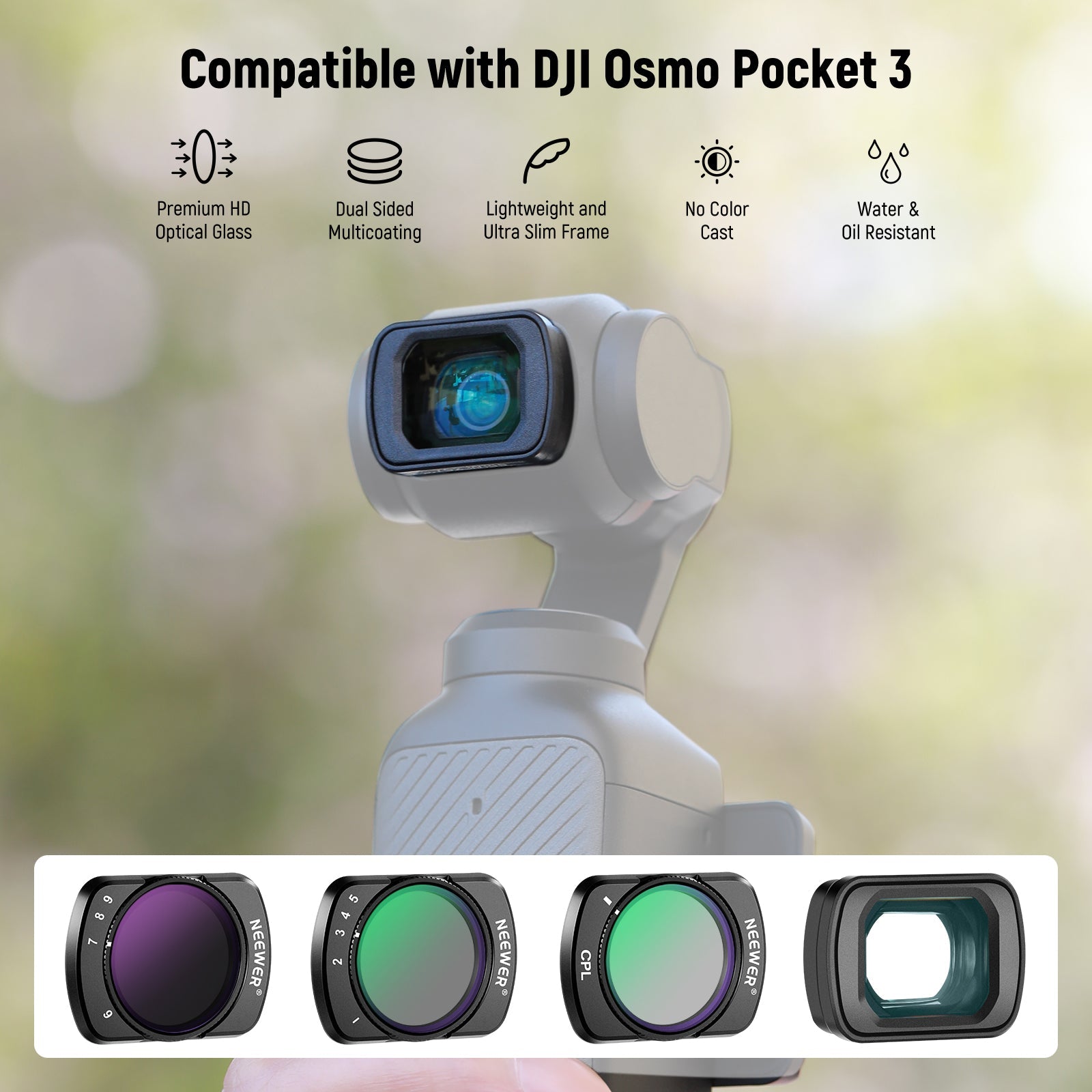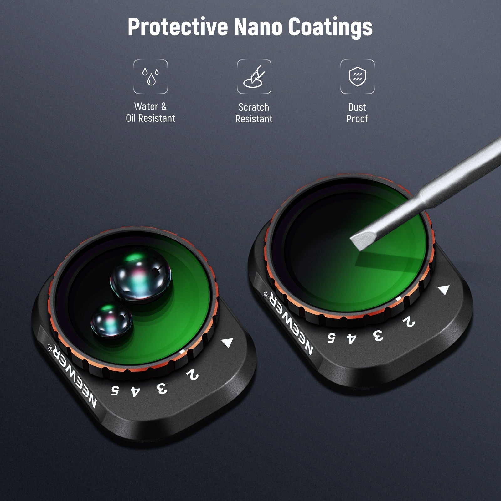 NEEWER offers DJI lens filters that are ideal for professional aerial photography and videography. With the help of these DJI camera filters, you can capture sharp photos in bright lighting and create motion blur in dynamic scenes. Choose a DJI lens filter that is compatible with your action camera model.