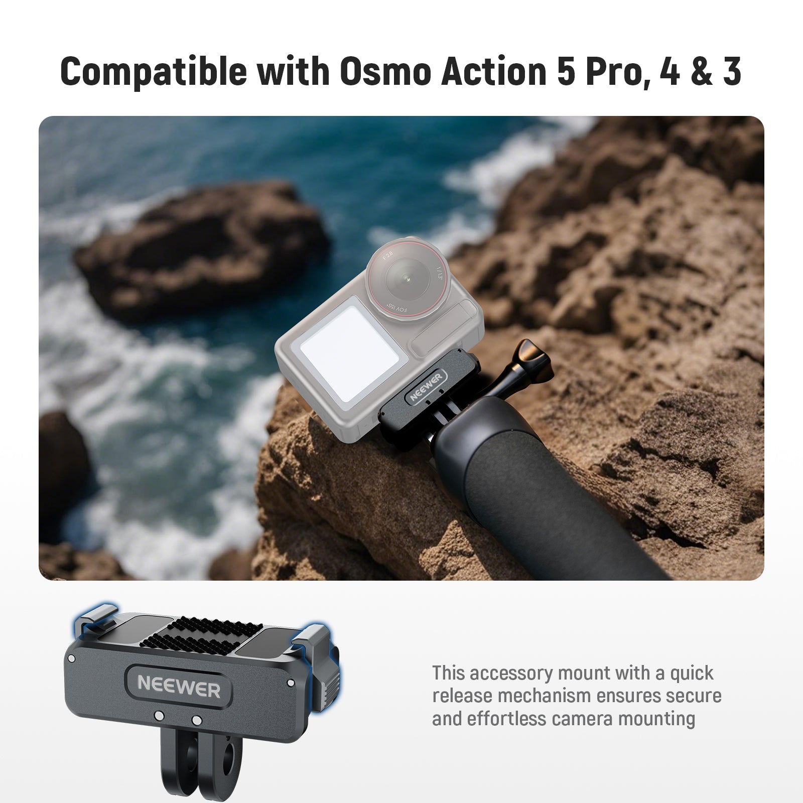 - For Osmo 360/ Action 5 Pro, 4 & 3- Compatible with DJI Osmo 360, Action 5 Pro, Action 4, and Action 3, this camera accessory mount with a quick release mechanism ensures secure and effortless camera mounting