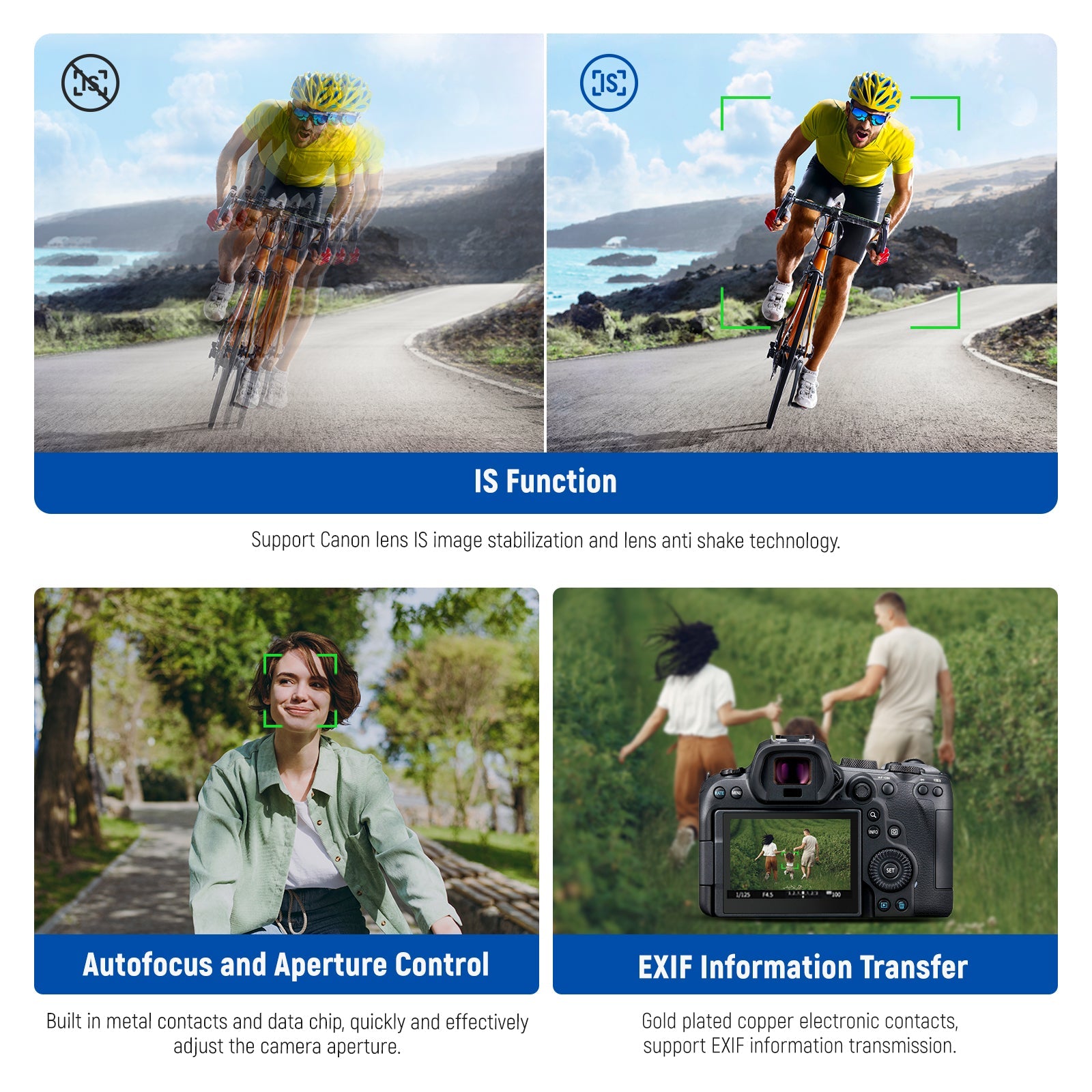 - Compatible Cameras: EOS R cameras (EOS R, EOS Ra, EOS RP, EOS R5, EOS R6, EOS R3 EOS C70 R5C R7 R10 R8 R50)