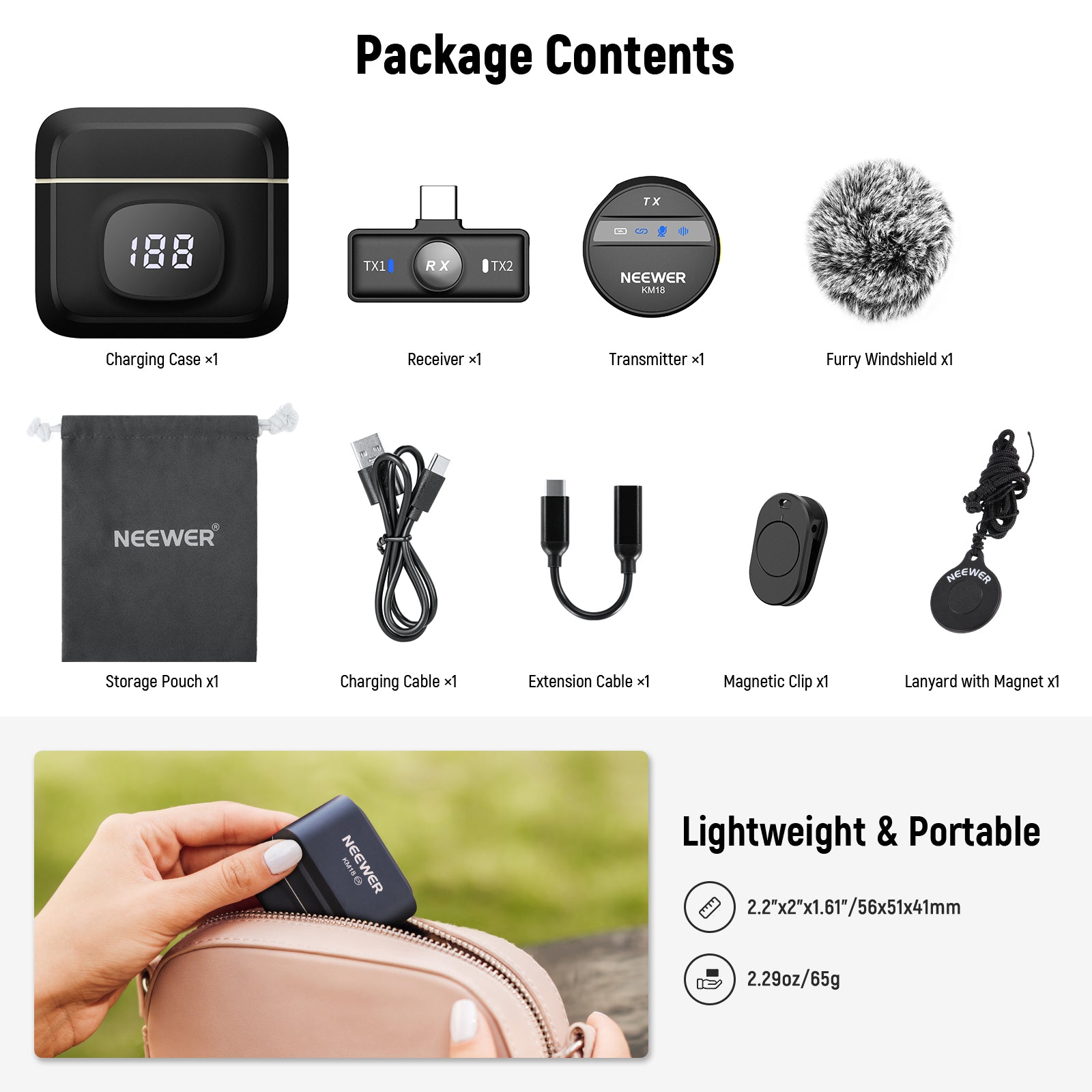 NEEWER KM18 Wireless Microphone System for Camera/Smartphone/PC