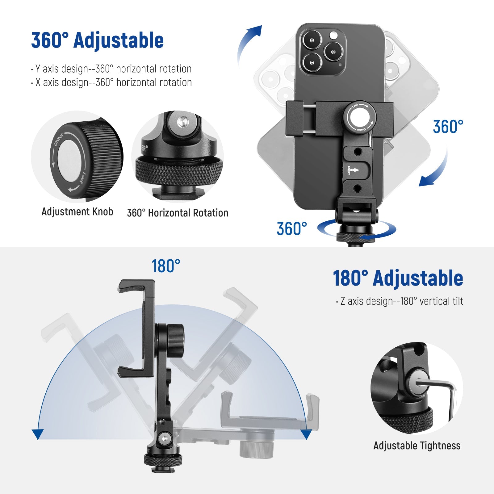 - Solid Construction- The tripod is made of Aluminum Alloy, durable and solid; With the use of a tripod, it can achieve greater performance and maintain image quality for cropping larger picture sizes