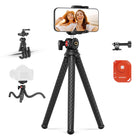 - Flexible Phone Tripod with Remote- Unlike the traditional tripods, this small tripod octopus stand flexibly wraps around posts, branches, or handlebars, and securely mounts a DSLR camera, action camera, smartphone, or tablet up to 4.4lb (2kg). Also includes a Bluetooth shutter release to trigger afar (≤33ft/10m, unobstructed)