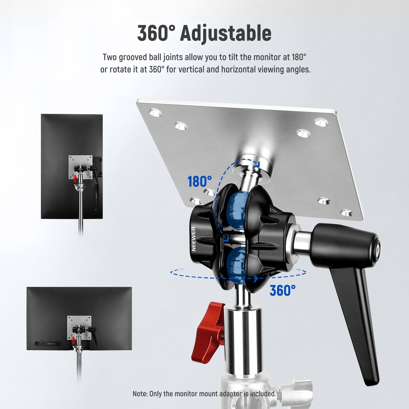 • Long Lever Metal Handle- The long lever handle lets you achieve optimal angles and lock the mount adapter in place even with the monitor installed. The rugged aluminum alloy material offers better grip and durability and is not easily damaged to withstand numerous adjustments and adapt to different climatic environments
