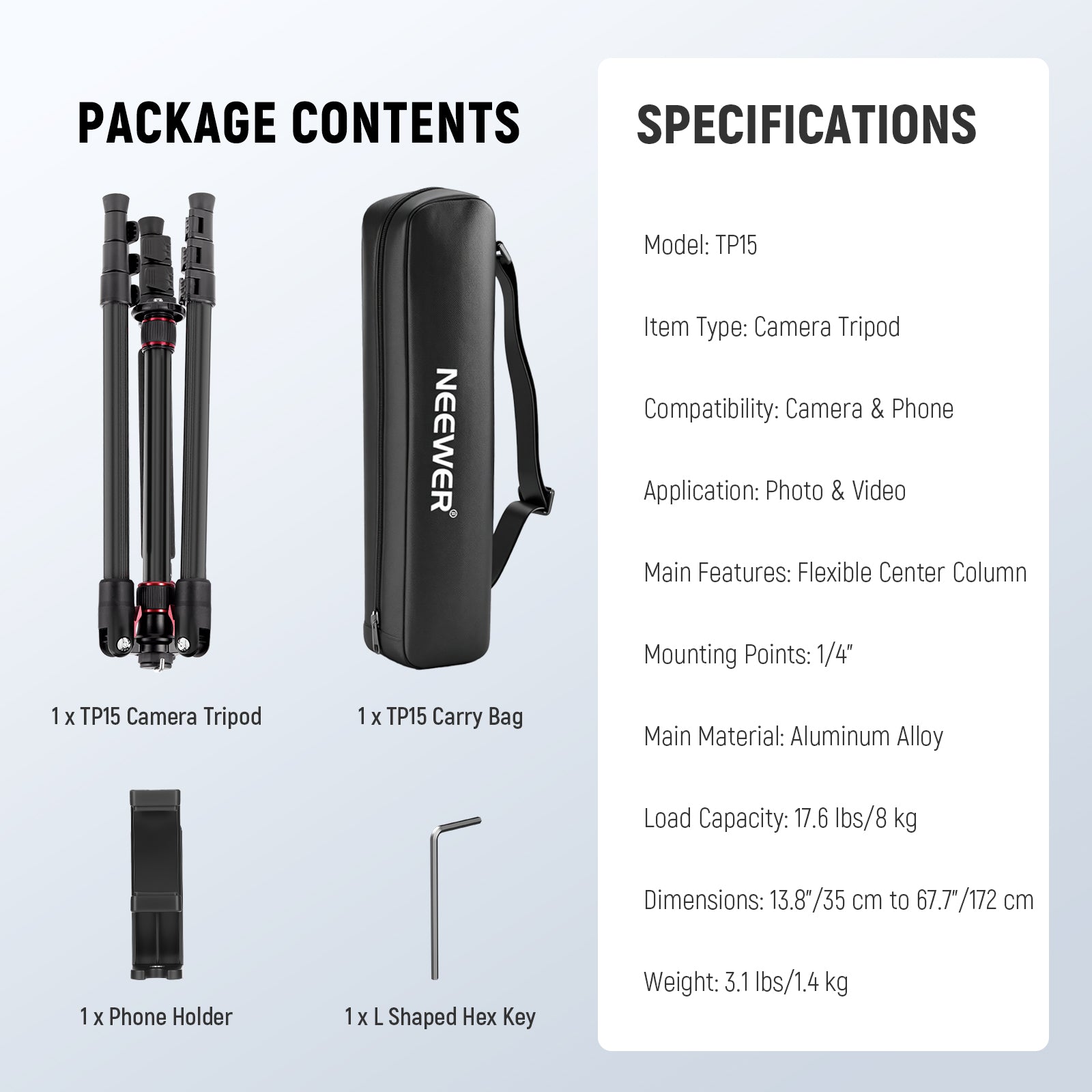 NEEWER BASICS TP15 71"/180cm Camera Tripod Monopod