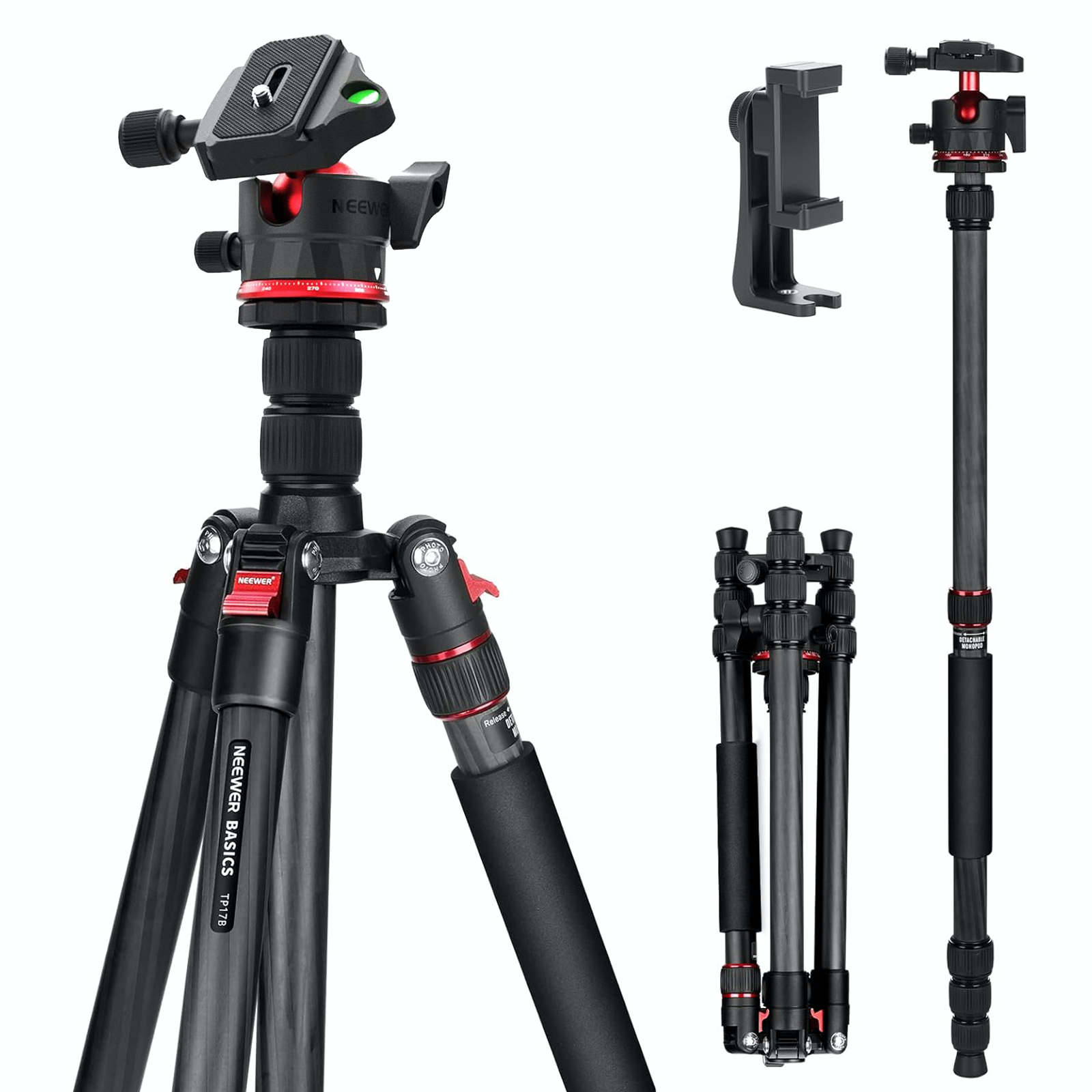 NEEWER BASICS TP17B 64"/162cm Carbon Fiber Travel Tripod Monopod