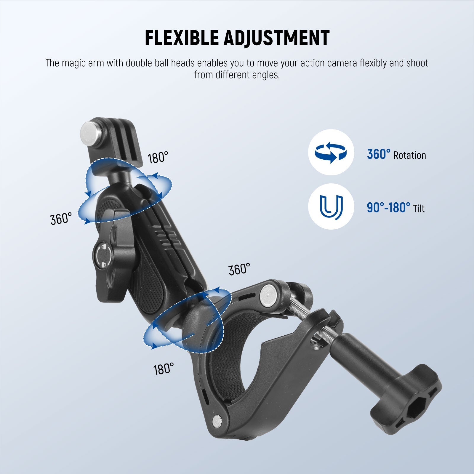 - Secure Bicycle Mount with Quick Release- Constructed of robust aluminum alloy, the handlebar mount features a rubber lined clamp for slip resistant attachment, ensuring your Pocket 3 stays securely in place even on bumpy rides. The adjustable knob allows for quick tightening, release, and angle adjustments, providing both convenience and stability during use
