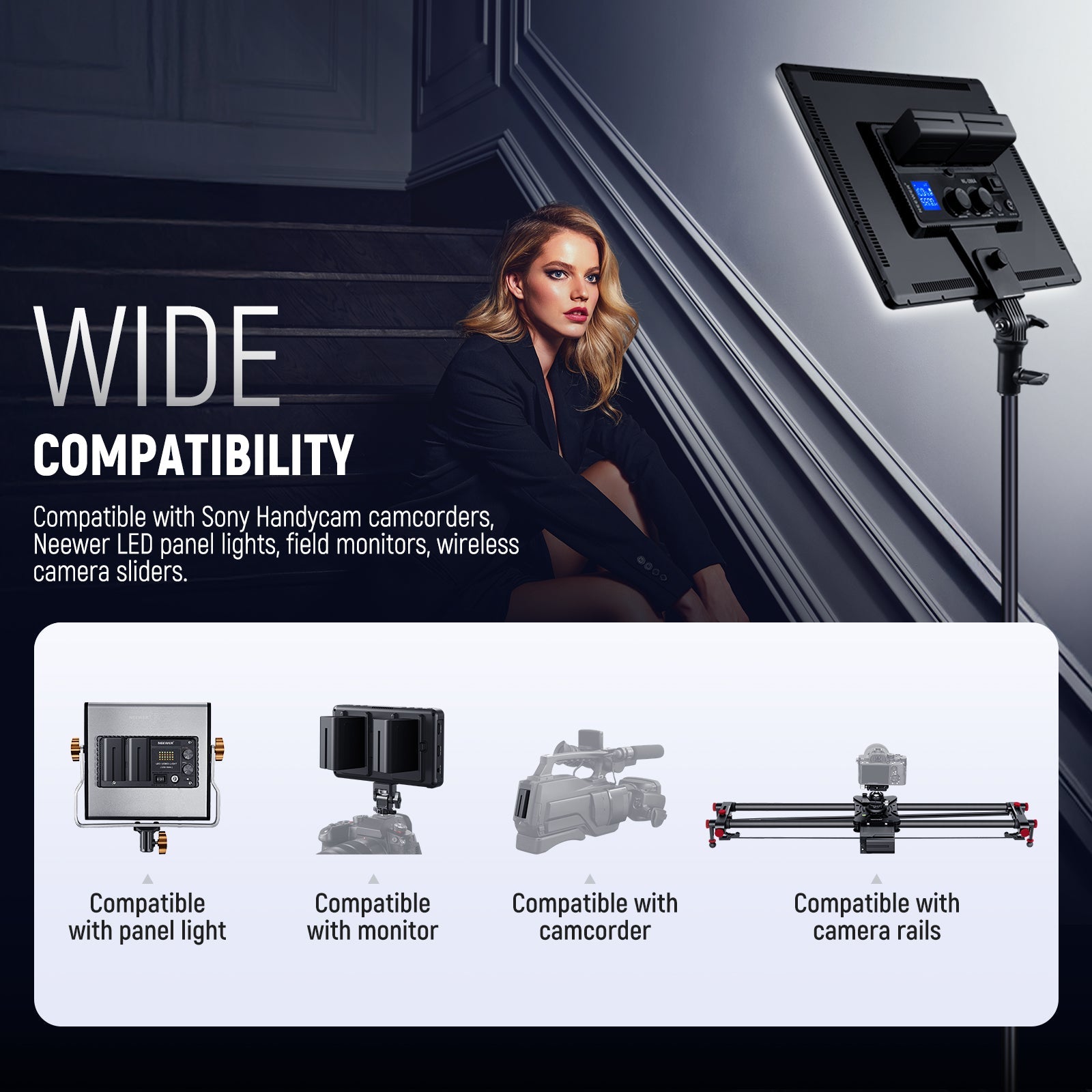 - Introducing NEEWER BASICS- Simple and practical, NEEWER BASICS is an economical product line that focuses on essential functions and designs, without unnecessary extras and materials. The USB charger is compatible with Sony NP-F550, NP-F570, NP-F750, NP-F770, NP-F960, NP-F970, and NP-F975 batteries. Our NP-F970 7800mAh replacement backup batteries with USB Type C charger can power Neewer LED panel lights, field monitors, wireless camera sliders, and compatible with Sony Handycam camcorders