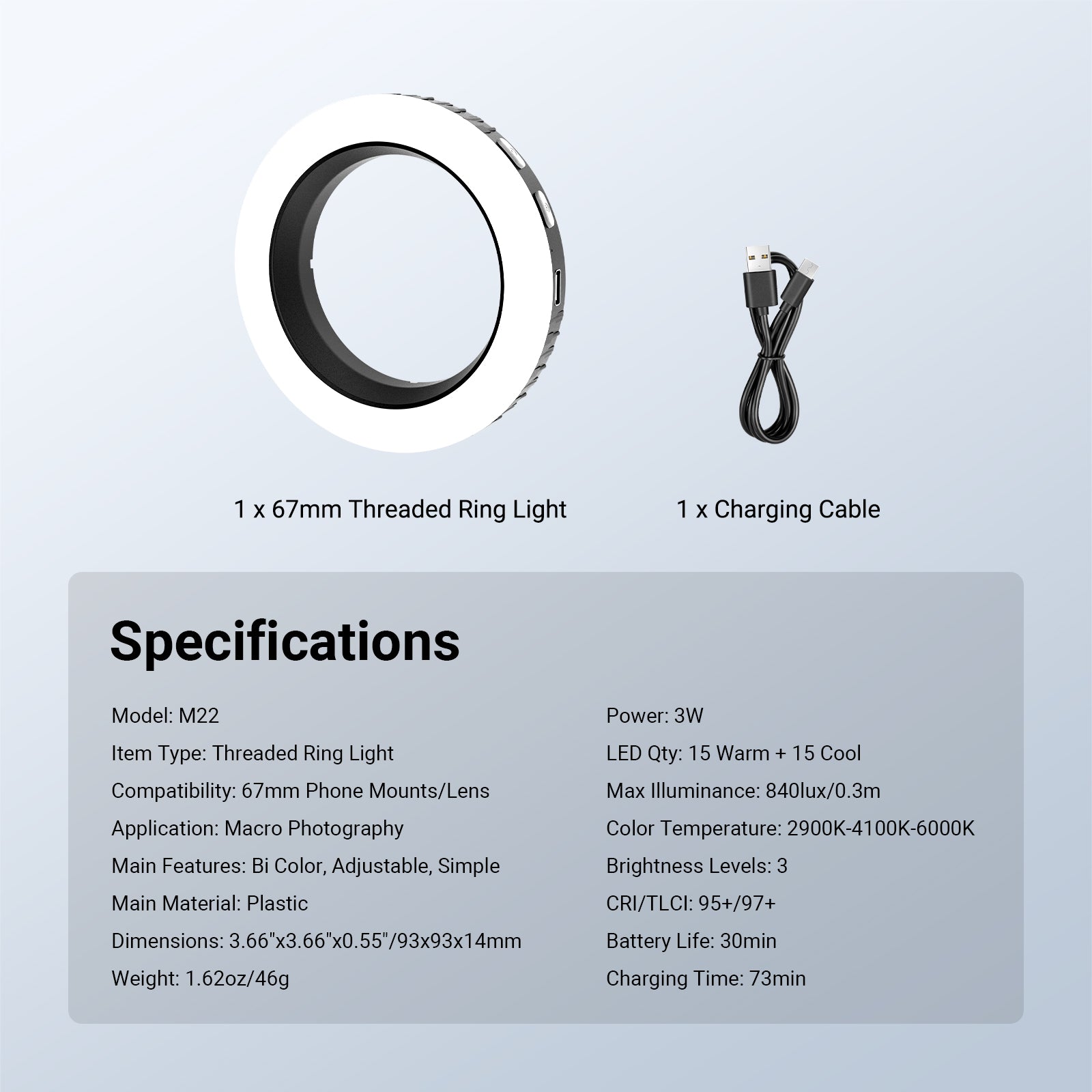 NEEWER BASICS M22 67mm Threaded Ring Light for 67mm Phone Mounts/Cases/Lens