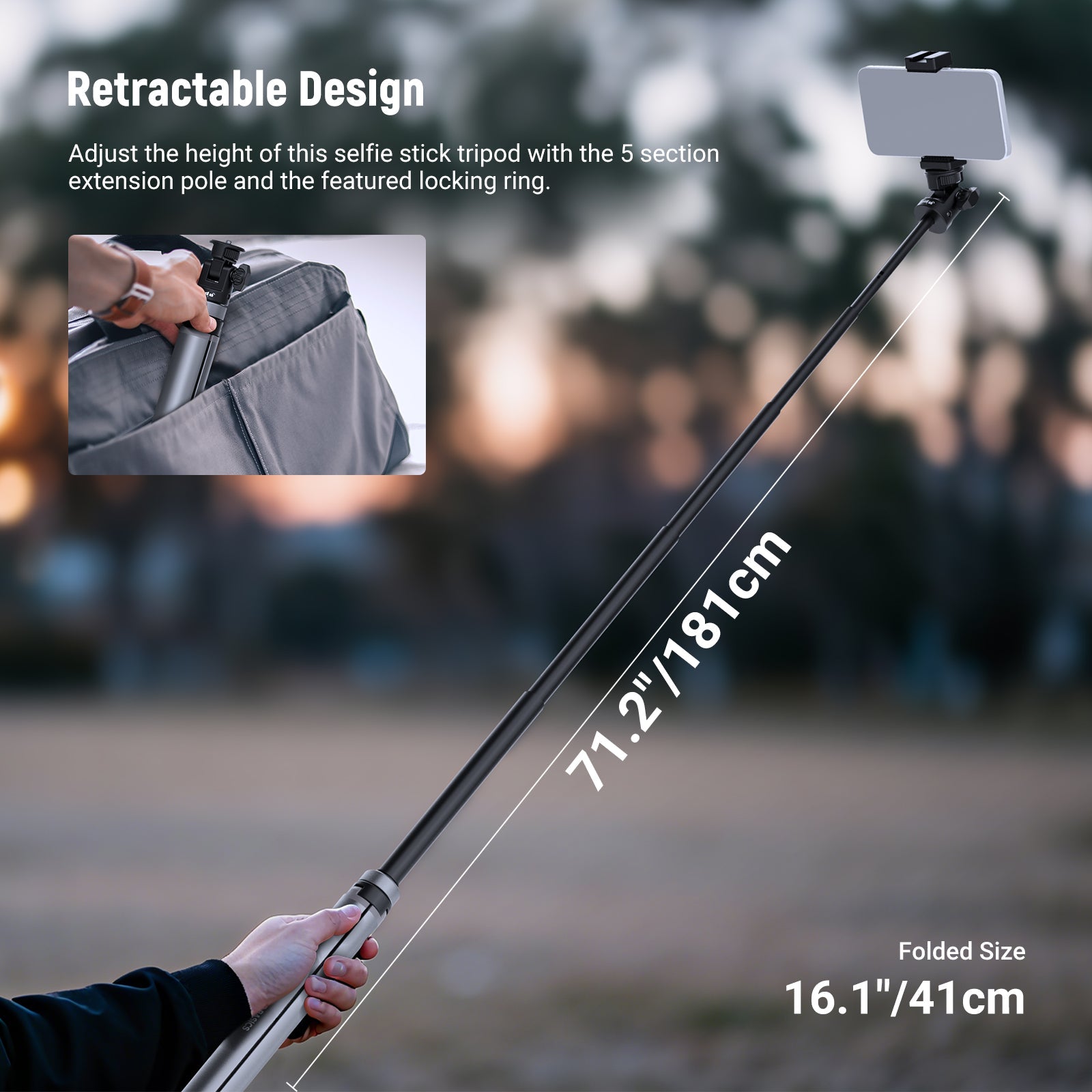 - Lightweight, Portable & Convertible- Crafted from aluminum alloy, the stand is easy to carry and quick to set up. It can also convert into a handheld selfie stick for flexible on the go shooting as content creator essential and influencer must have