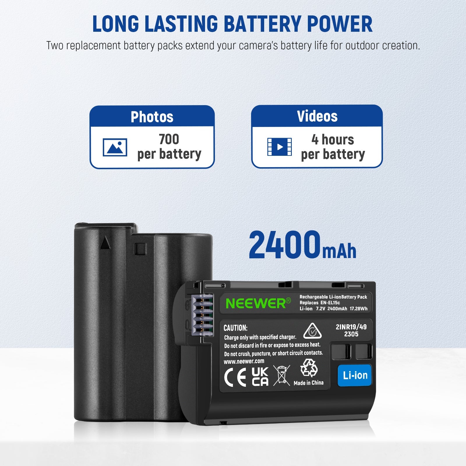 NEEWER EN-EL15c Replacement Battery and USB Charger Set