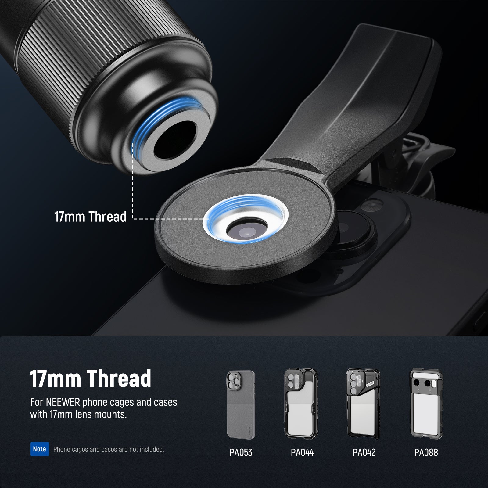 - 17mm Thread Phone Lens Clip- The phone lens clip can securely connect the lens to a smartphone, compatible with iPhone 17 16 Pro/Pro Max, 15 Pro Max, 14, 13, Galaxy S25 Ultra, S24 Ultra, and more. The telephoto zoom lens as macro lens attachment is also suitable for NEEWER phone cages, phone cases, and backplates with 17mm threads. Ideal as content creator essential cell phone camera accessories kit and influencer must have photography filming gear