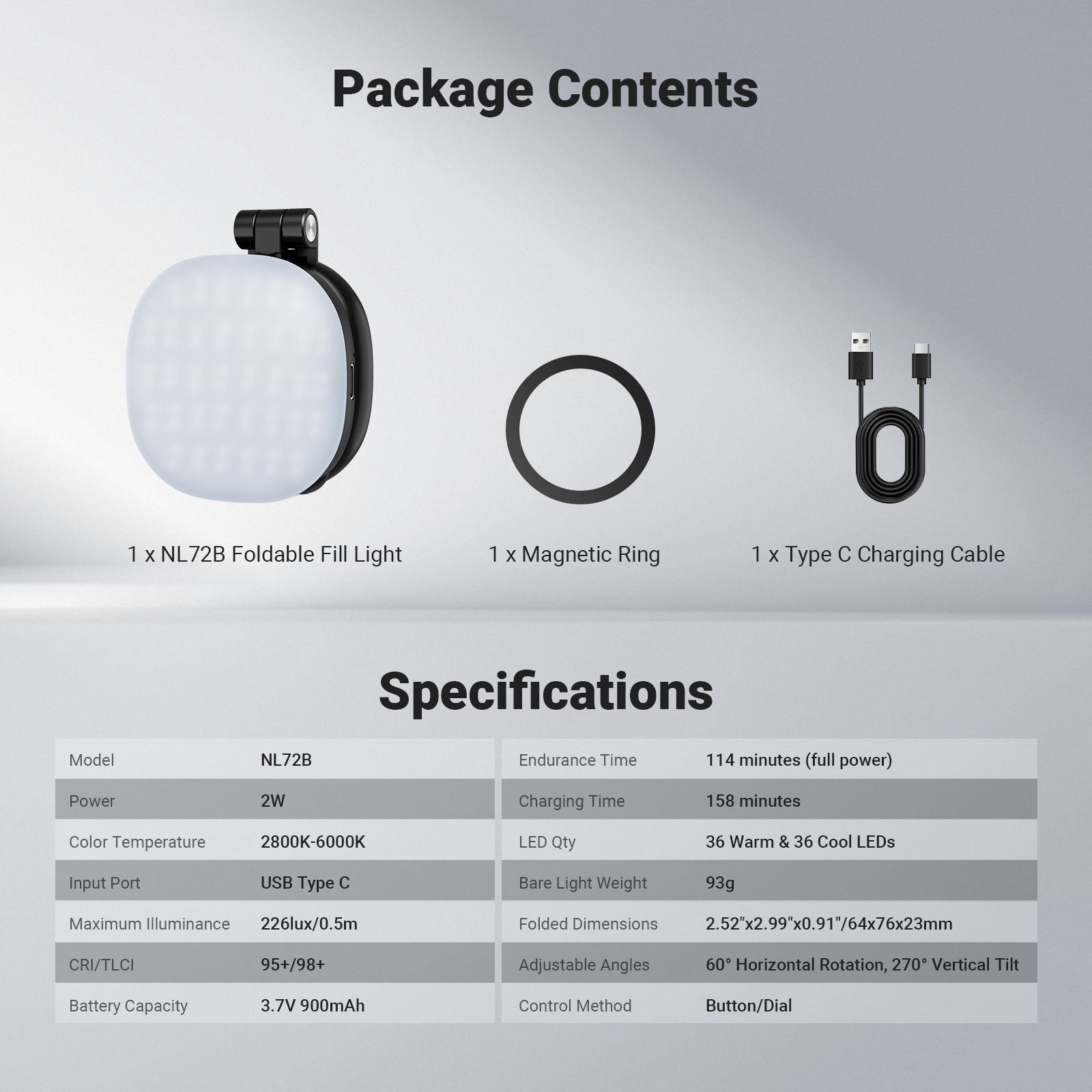 NEEWER BASICS NL72B Magnetic Selfie Light