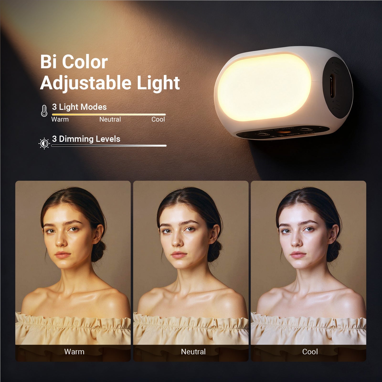 • Adjustable Mini Light- The fill light for phone and camera is only 2"x1.3"x1.3", featuring 40 bi color LEDs for soft & bright illumination with 3 light modes, 3 dimming levels, and high CRI90+ to flatter all skin tones and ensure accurate colors