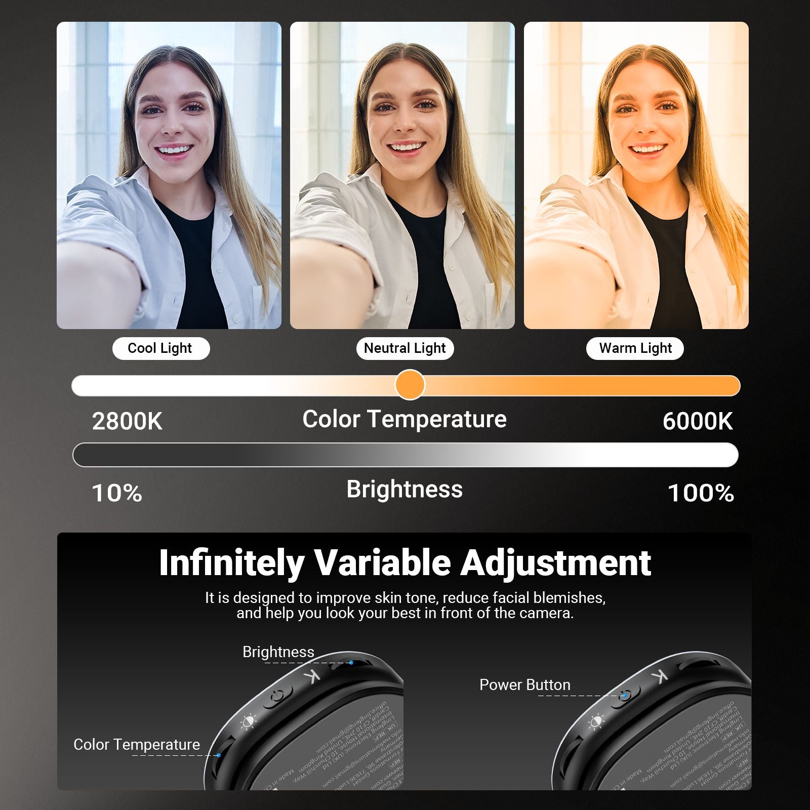 - Stepless Dimming- The small bi color LED panel photo ring light is dimmable via a dial, as content creator essential influencer/ makeup artist must have for YouTube TikTok social media vlog recording/podcast/laptop Zoom meeting webcam streaming lighting