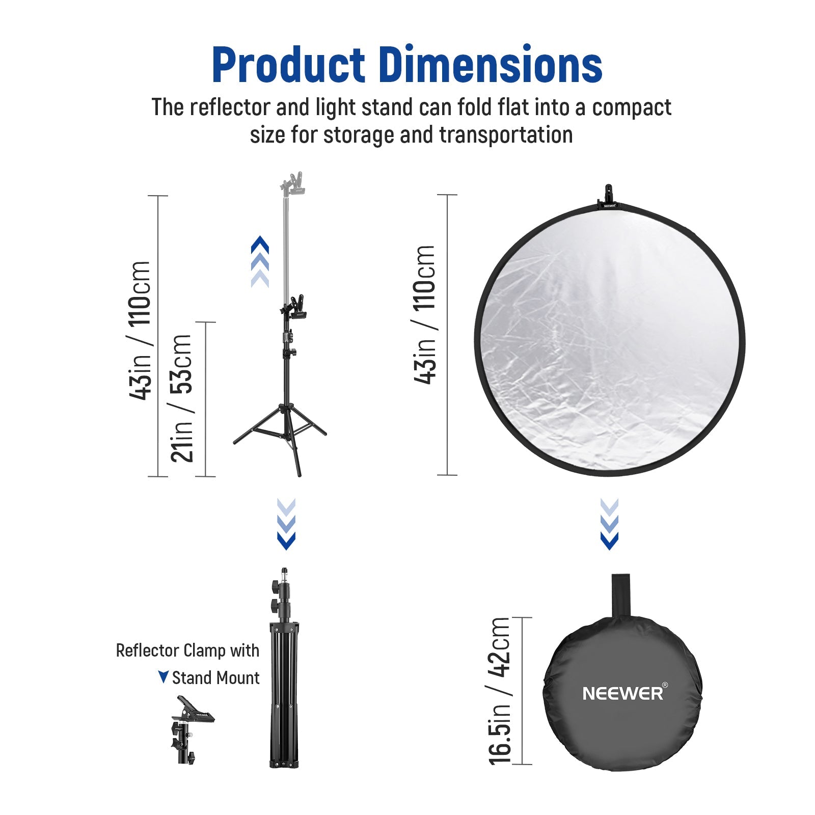 NEEWER 43”/110cm Light Reflector with Metal Clamp and Stand