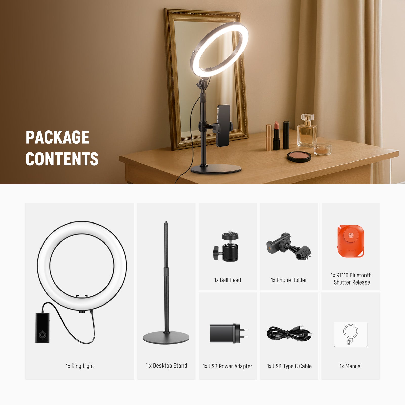 NEEWER RH8B/RH10B/RH12B Desk Ring Light with Stand