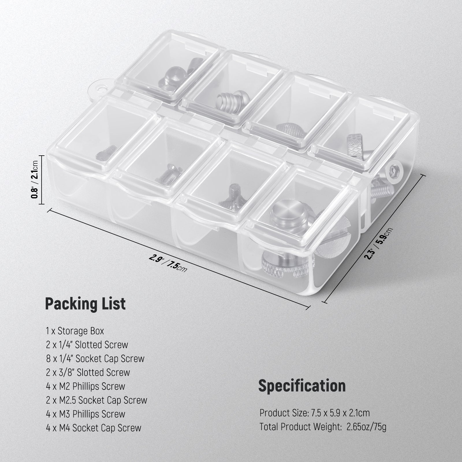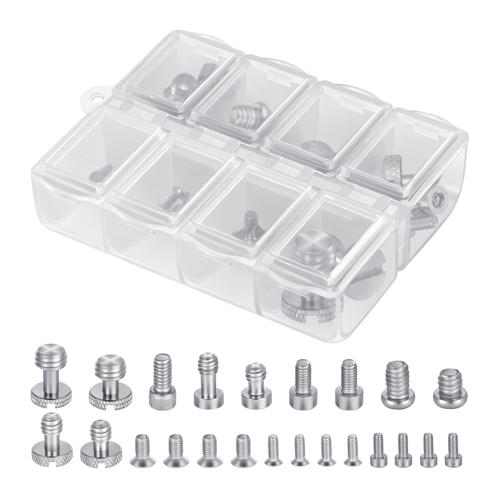 - Easy and Safe Keeping- A carrying box with 6 compartments is included to safely store the screws in an organized way. After usage, keep the screws in the small carrying box and carry them around with ease