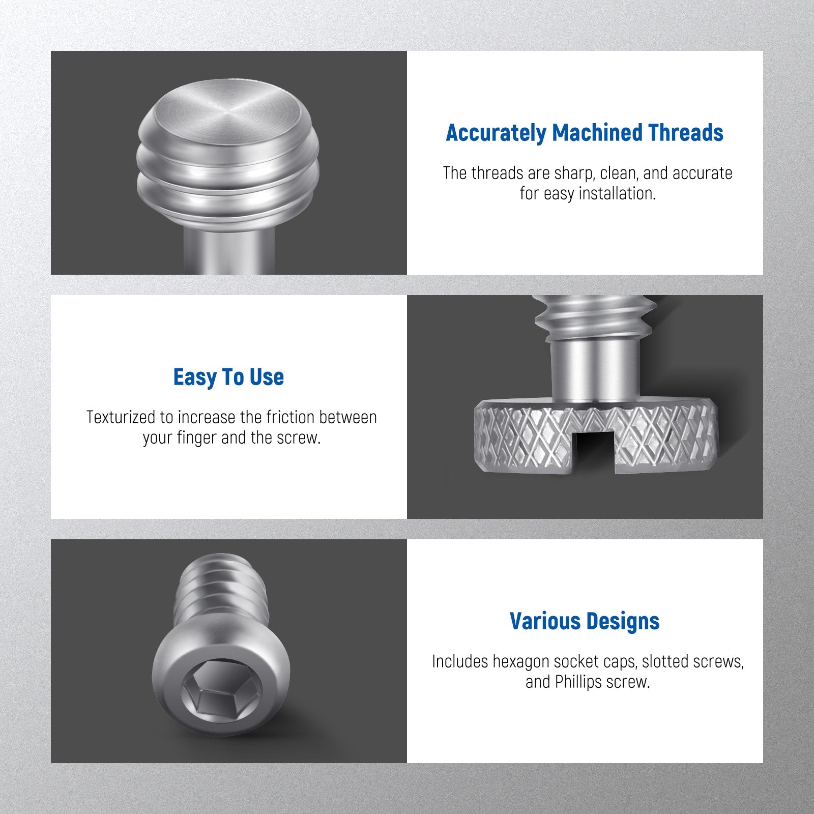 - Precise & Accurate Screw Size- With precise measurement and CNC machined technology, the screws of different specifications are built with accurate screw threads. Widely and perfectly compatible with phone cages, camera cages, camera top handles, quick release plates, and more