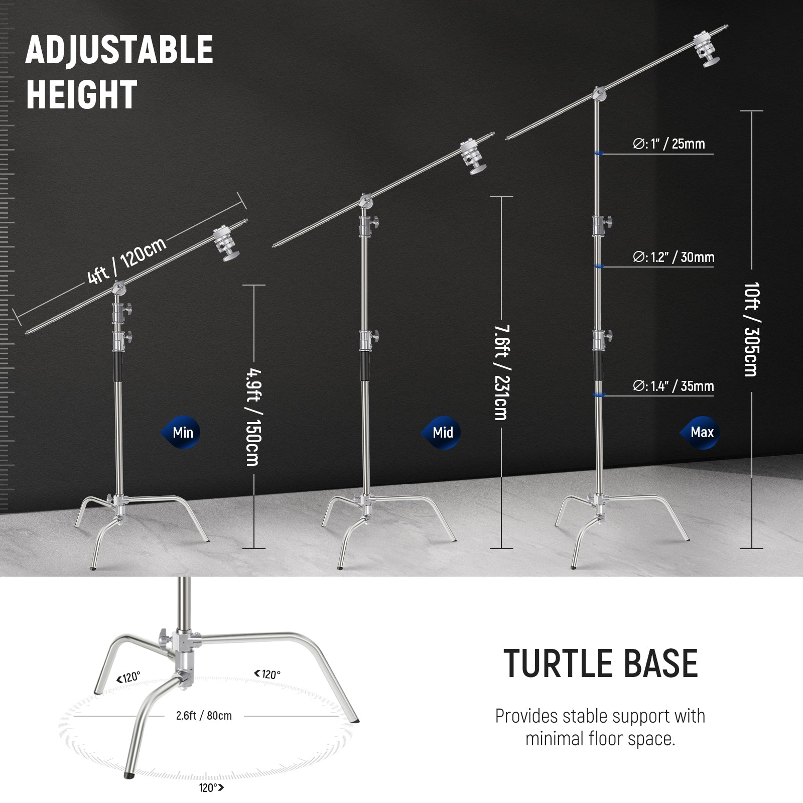 NEEWER SC320B 305cm Stainless Steel C Stand Light Stand with Carry Bag