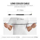 - Stretchable Cable- The coiled cable can stretch from 13" to 32" (33 to 80cm) for effortless operation