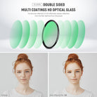 - 30 Layers Nano Coatings- The 30 layers of nanocoatings on both sides of the filters make them waterproof, scratch-resistant, and oil-proof, to effectively reduce the reflection coming from all directions and the filter itself