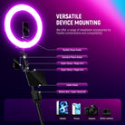 - Flexible Height & Multi Device Mounting- The light stand's height is adjustable in three sections (24.4”-78.7”/62-200cm) and allows for front and back angle adjustments. Paired with the ring light's 180° tilt, achieve effortless multiple-angle shooting. Use accessories like the included phone/tablet holders and super clamps for simultaneous multiple devices recording during short videos, live streaming, and content creation