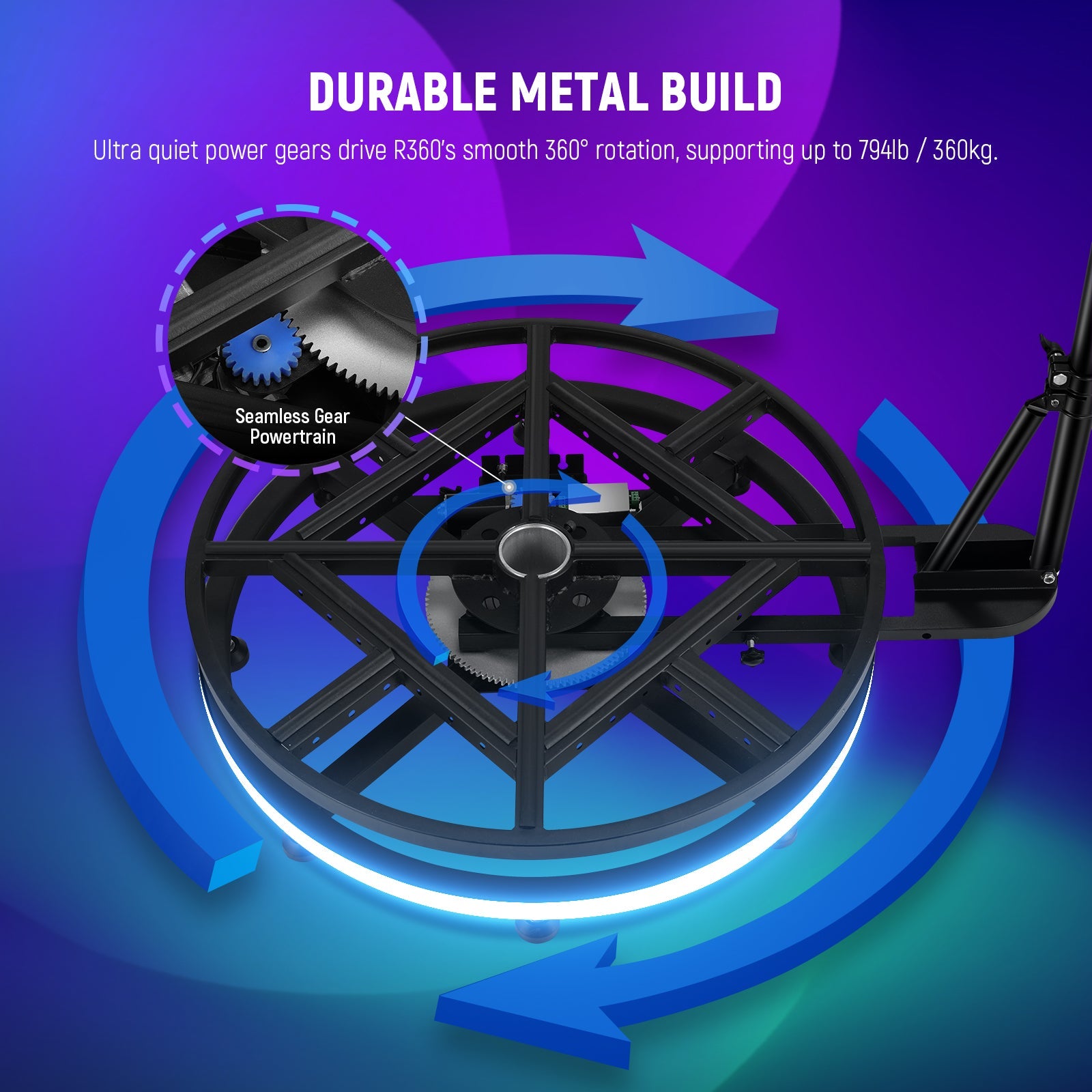 - Silent Operation & All Metal Turntable- The NEEWER R360 boasts high quality power gear sets for super low noise during rotation. Its thick all metal construction ensures a robust and load-bearing capacity, supporting a maximum static load of 800lb (360kg). This stability makes it an ideal pivot point for high-speed rotation of the light stand