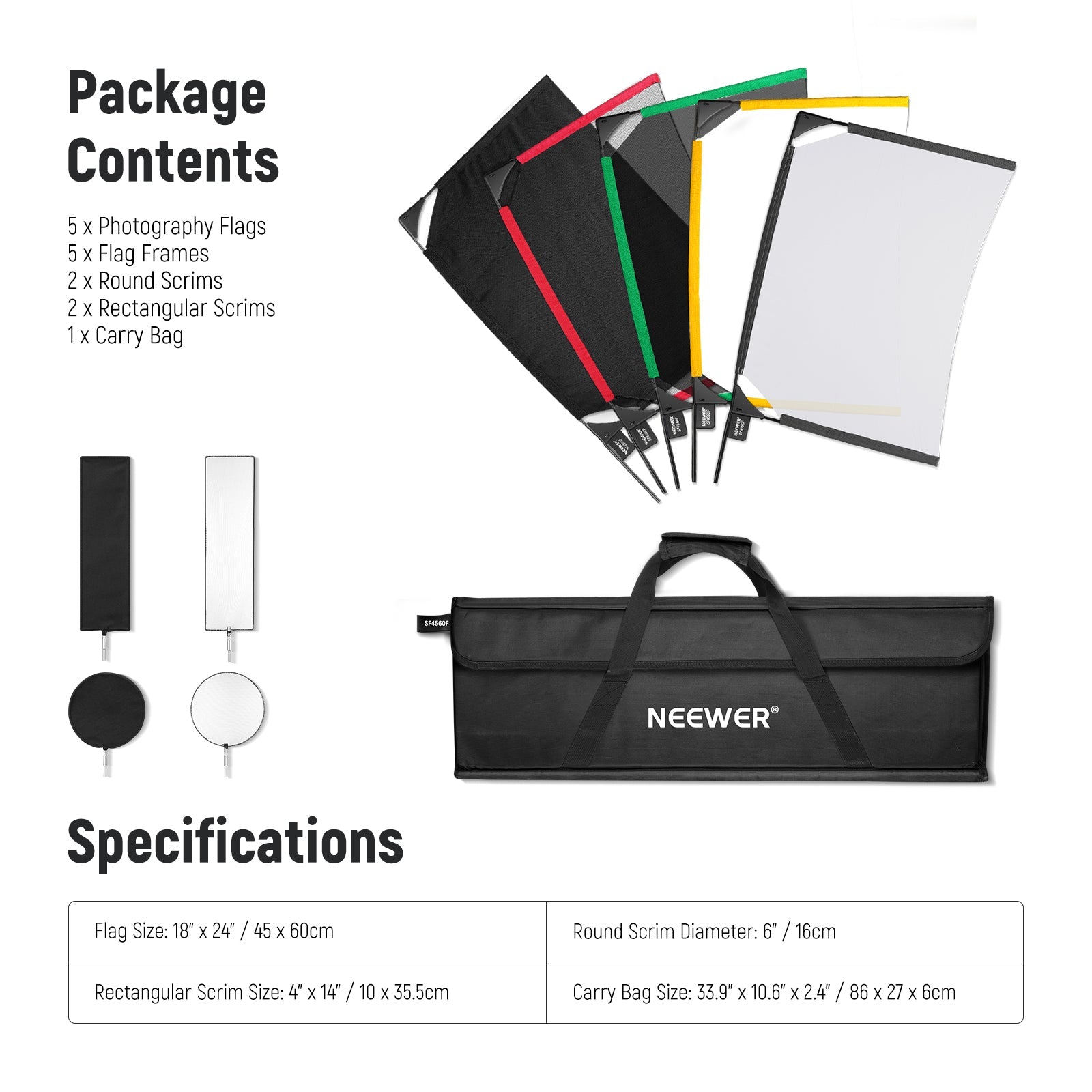 NEEWER 5 in 1 Photography Foldable Scrim Flag Kit