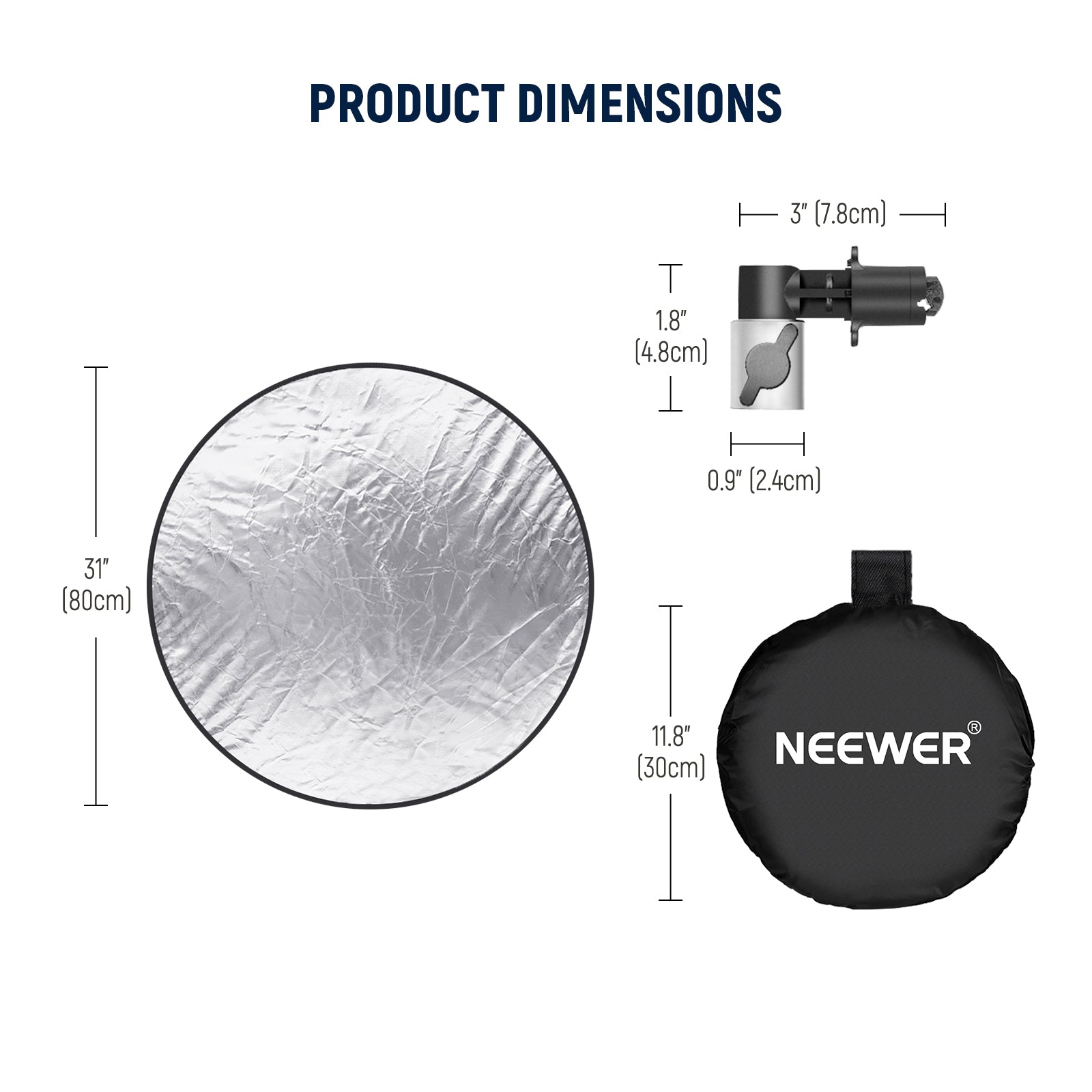 NEEWER 5 In 1 Round Reflector Kit with Holder Clip & Bag