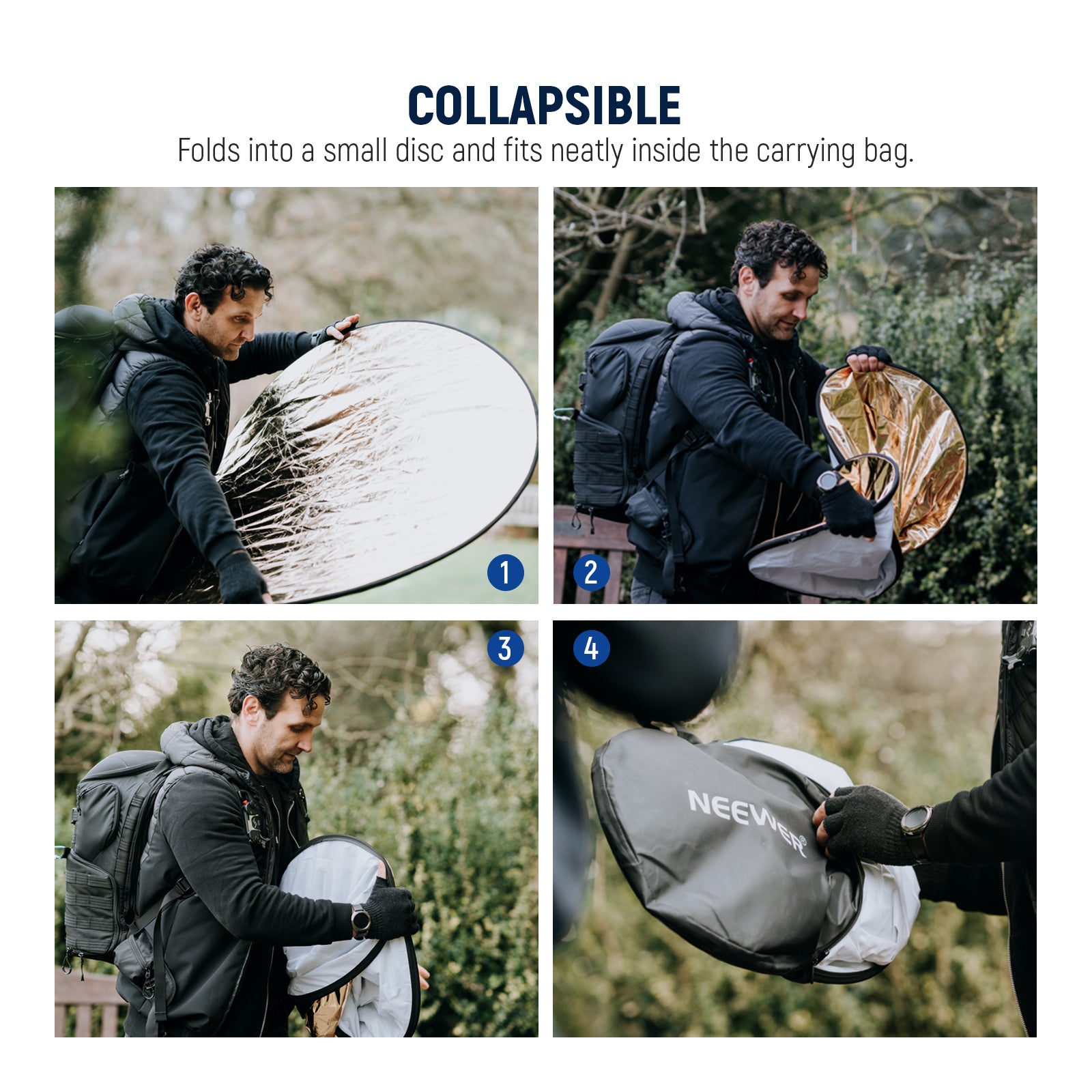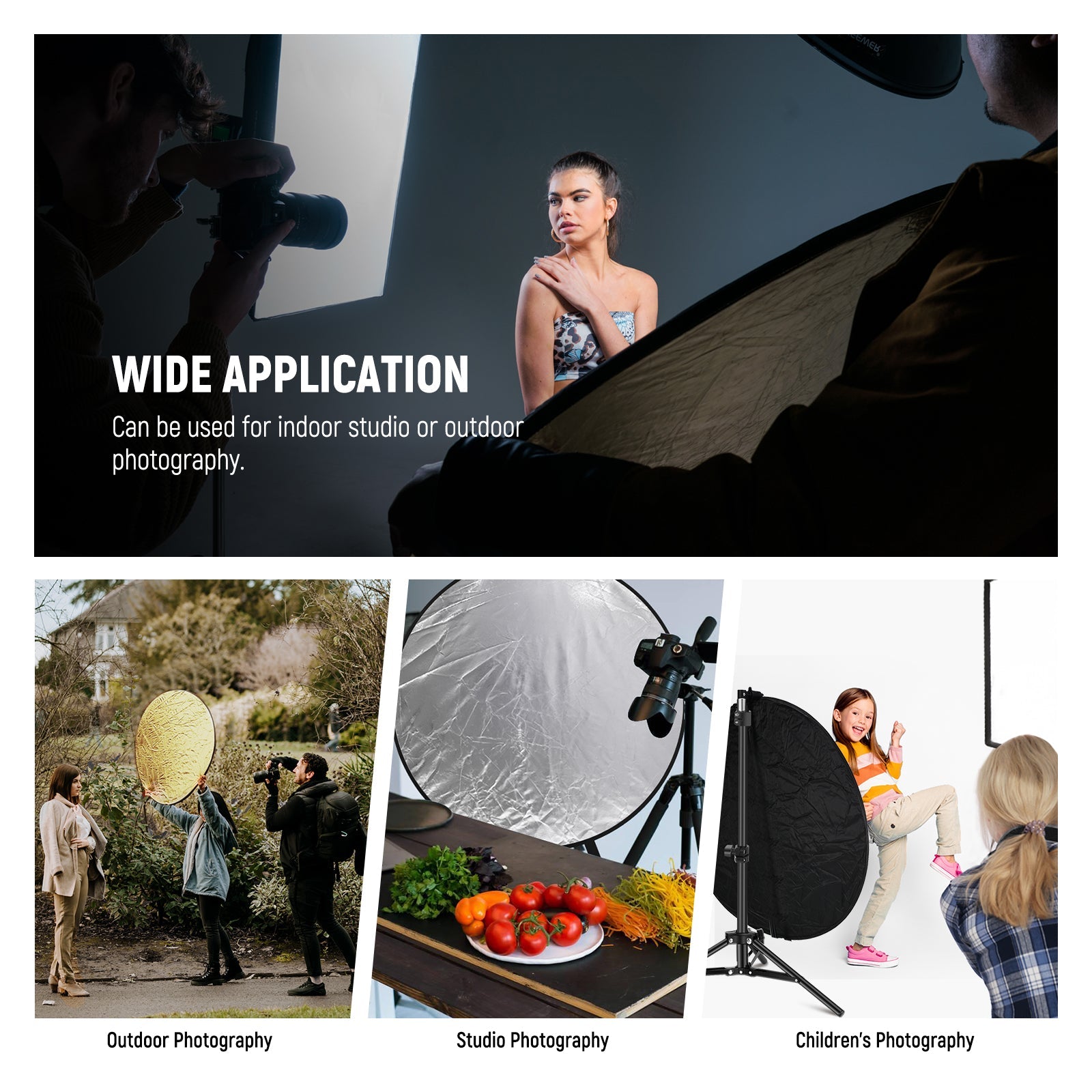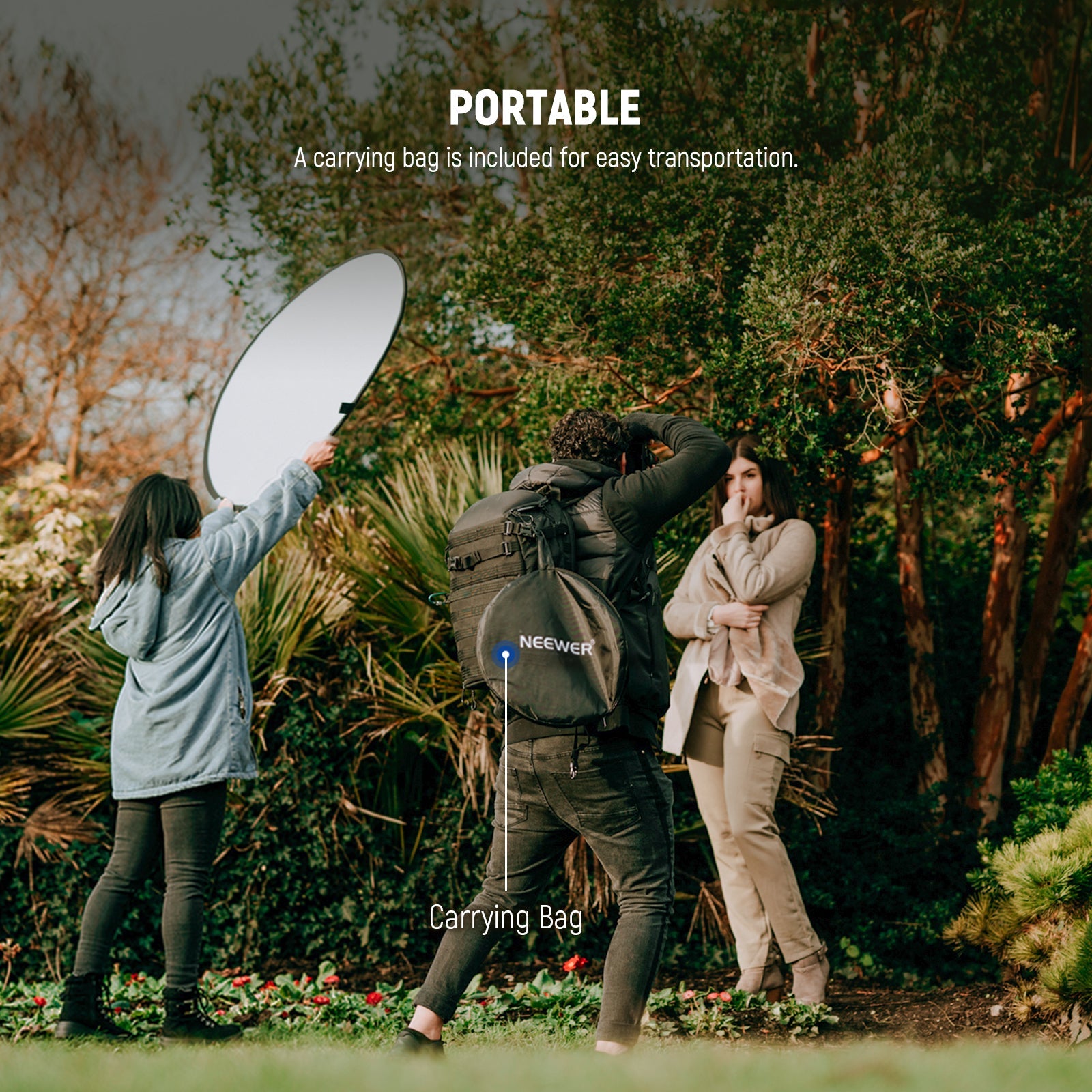 - Portable Carry Bag Included- An included zippered carry bag can accommodate the folded reflector and the holder clip for outdoor photography, including portraits, weddings, interviews, and more