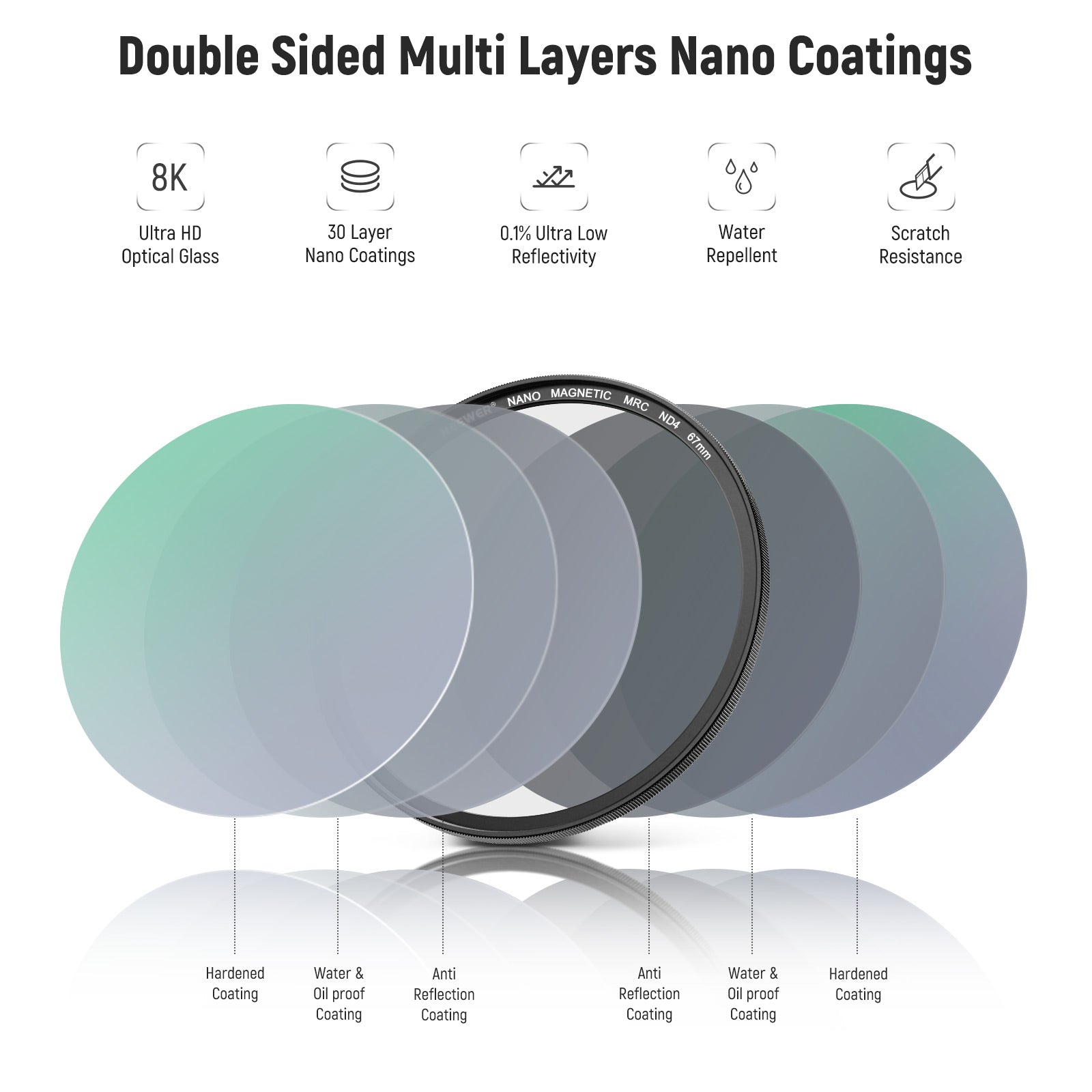 NEEWER Magnetic ND Lens Filter Kit (ND4 ND8 ND64 ND1000)