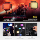 - APP/2.4G/Panel/DMX Control- 4 control methods to meet both the pro and novice. The NEEWER APP enables wireless control and multi light group management; the built in 2.4G module achieves master slave control with different light models (SL90 PRO, RGB1, RGB1200, MS60C, MS60B, MS150B, FS150B, BH30S, CB60B, etc.); the panel with a color display showing intuitive parameters is simple to operate; A 5 pin DMX port can connect to a DMX console for complicated multi light setups