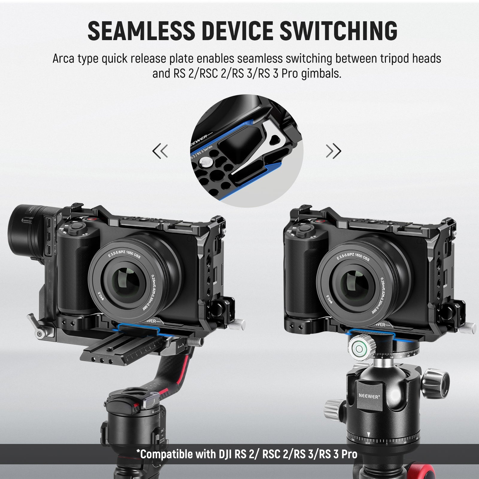 - Arca Type Base for Seamless Switching- With a standard Arca type base, the cage is even compatible with DJI RS 2 RSC 2 RS 3 and RS 3 Pro stabilizers and limitless tripod heads―giving you the ability to seamlessly switch your camera between different equipment