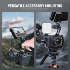 - Abundant Mounting Points- Multiple 1/4" threads, 3/8" threads with ARRI locating holes, and cold shoes can connect microphones, monitors, LED lights, magic arms, top handles (included), and more. Also mount the cage on a tripod in vertical or horizontal directions. Integrated NATO rails on the top and the left side of the cage enable quick installation of monitor mounts, handles, or articulating magic arms