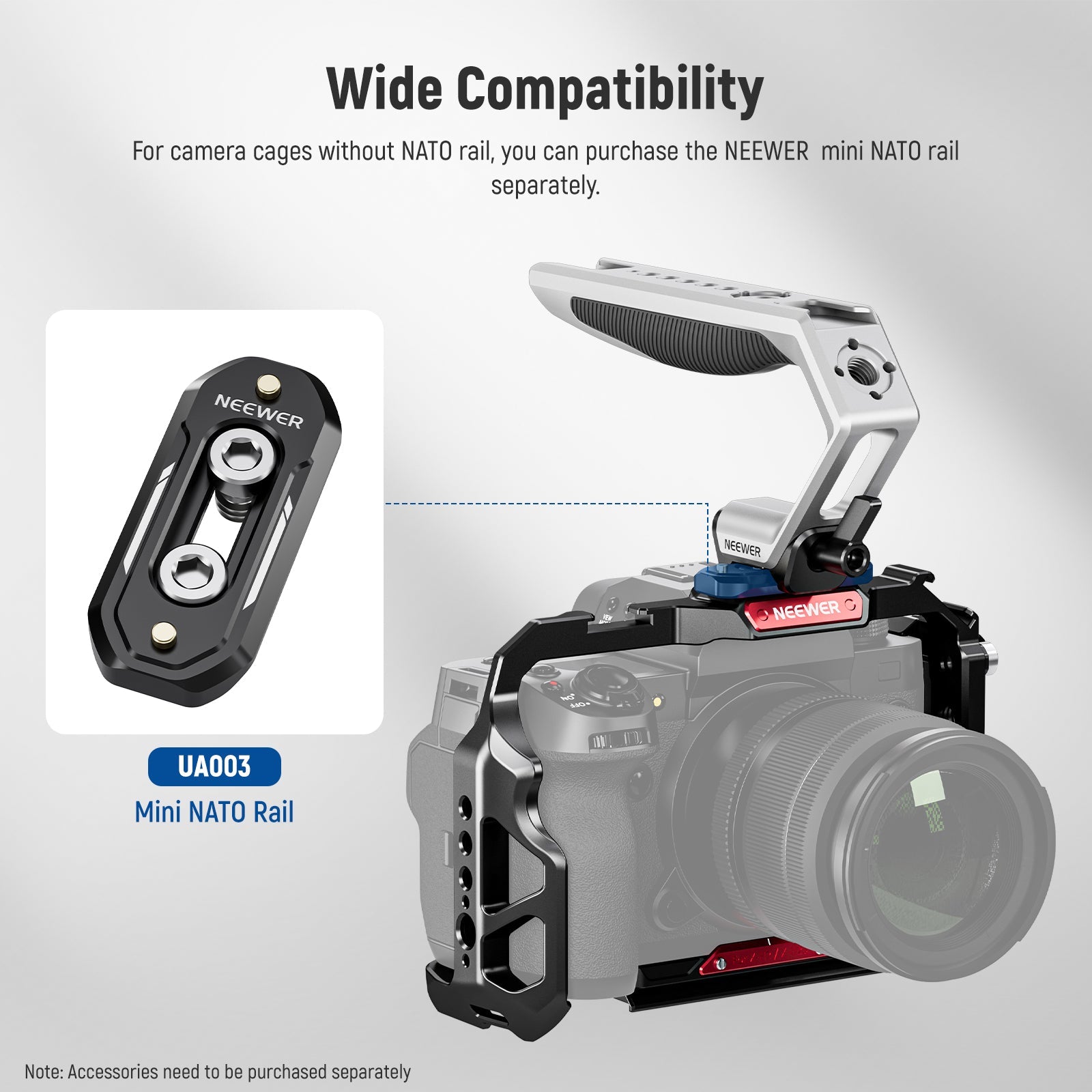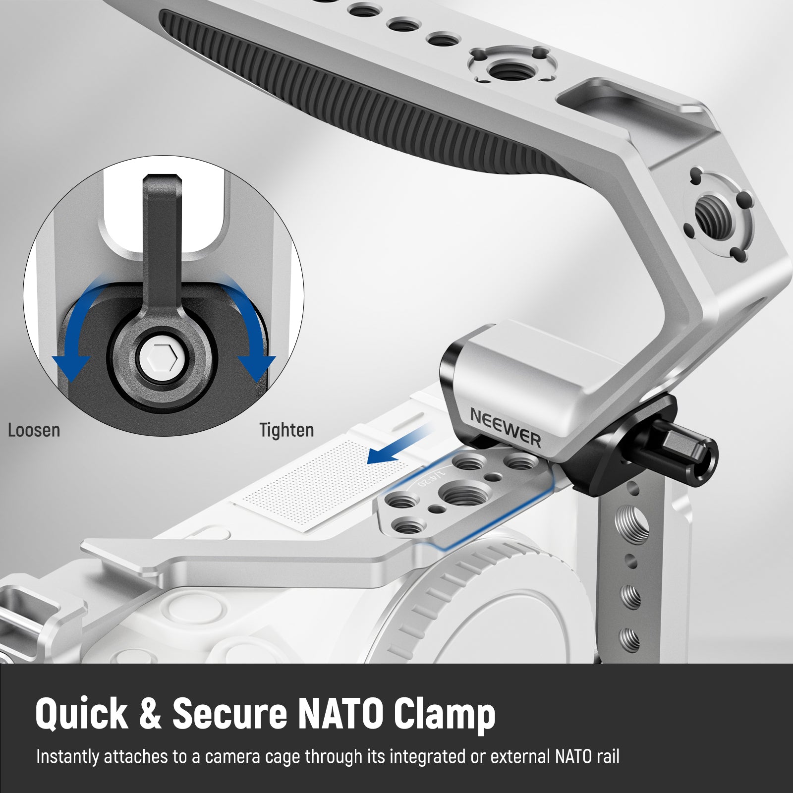 - Quick & Secure NATO Clamp- NEEWER CA111 Top Handle with NATO Clamp can instantly attach to a camera cage through its integrated or external NATO rail and boast a 22lb/10kg high load capacity for secure equipment mounting
