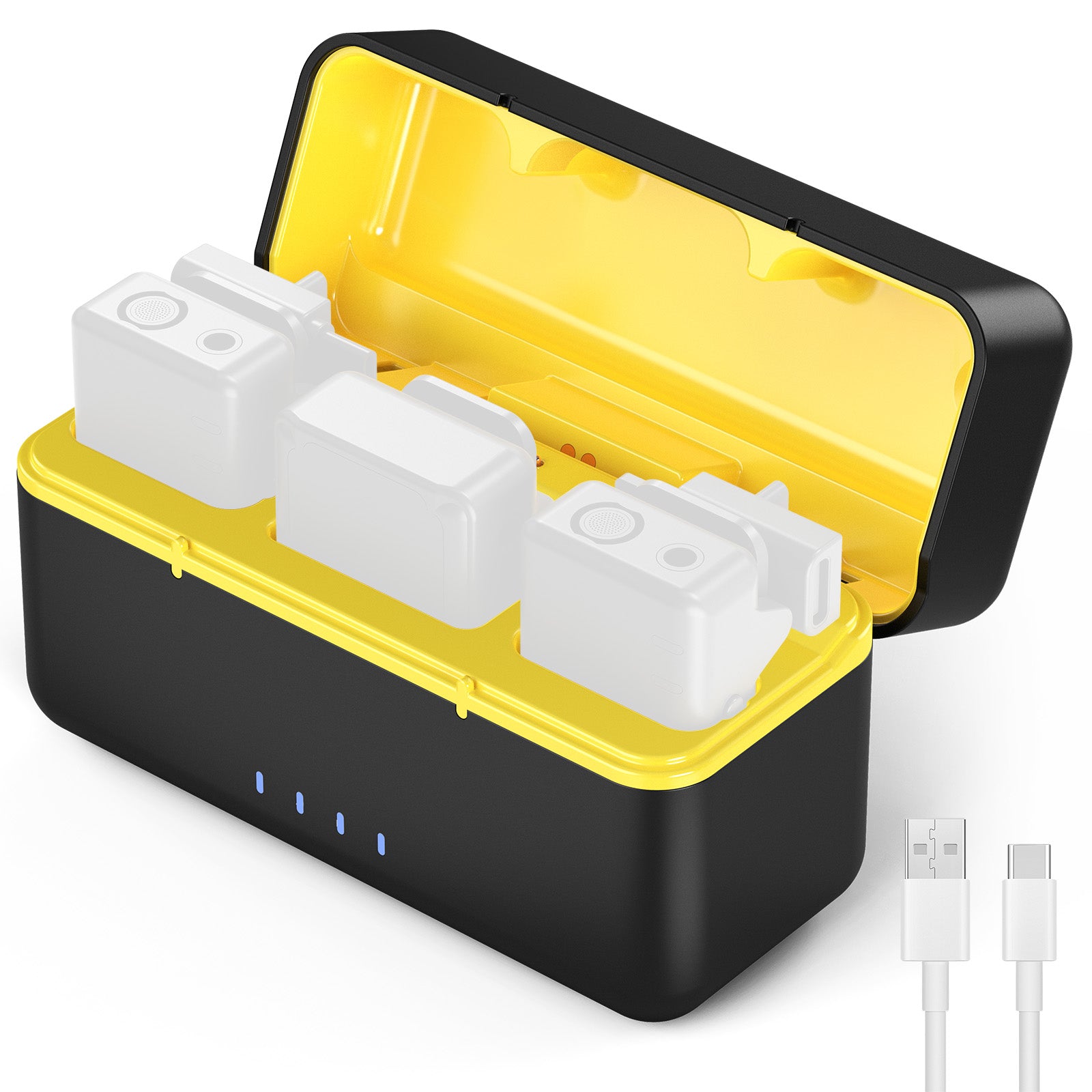 - Small Size, Smart Charging- It provides large power even with the small size. The fully charged charging case holds twice full charges for the CM28 and CM28 PRO transmitters and receiver in just 1.5 hours with a powerful 2000mAh battery capacity, enabling you to charge on the go. Automatically start charging after putting the TX and RX in the case. Automatically turn on the TX and RX when opening the lid, and turn off them when closing the lid