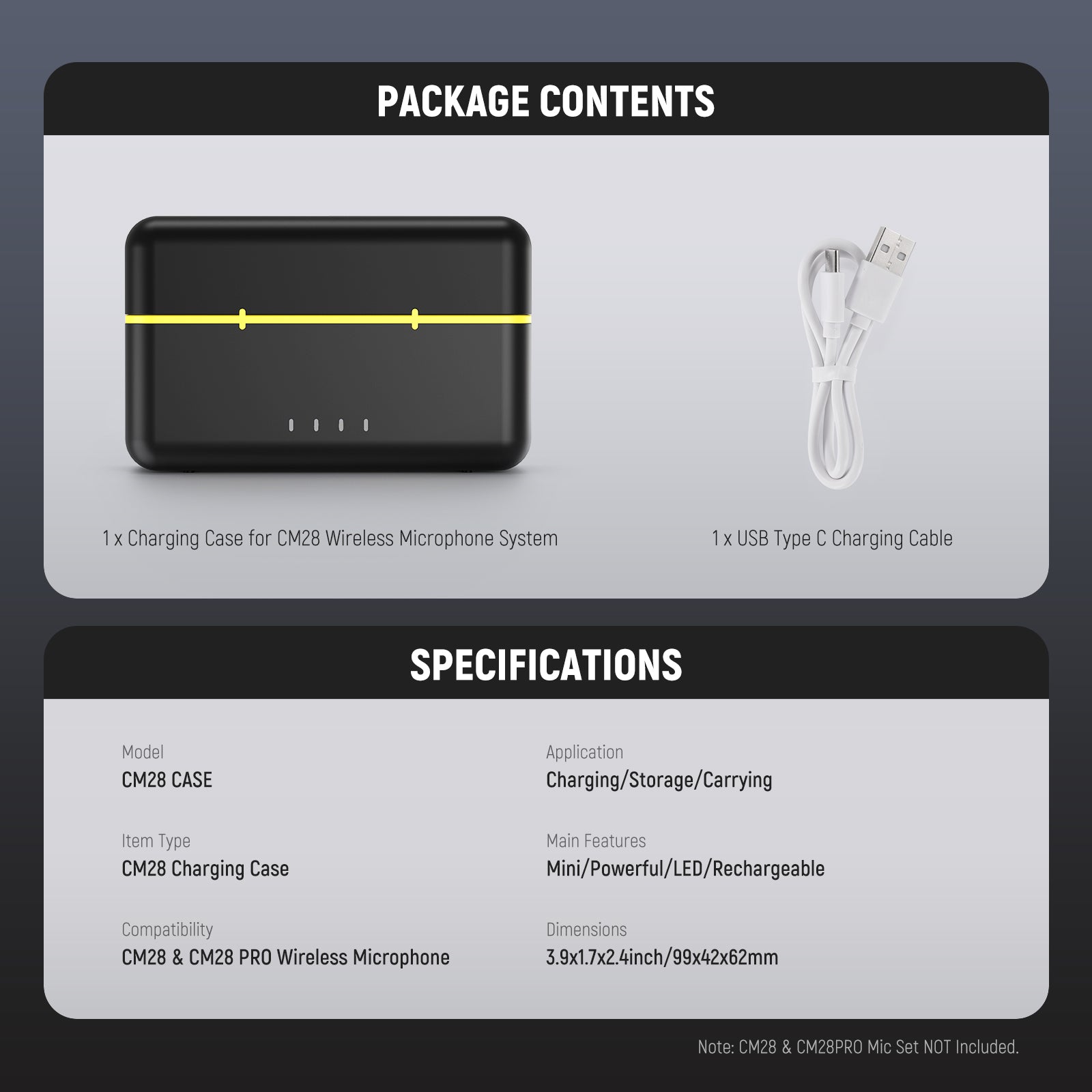 - 1 x Charging Case for CM28 / CM28 PRO Wireless Microphone System