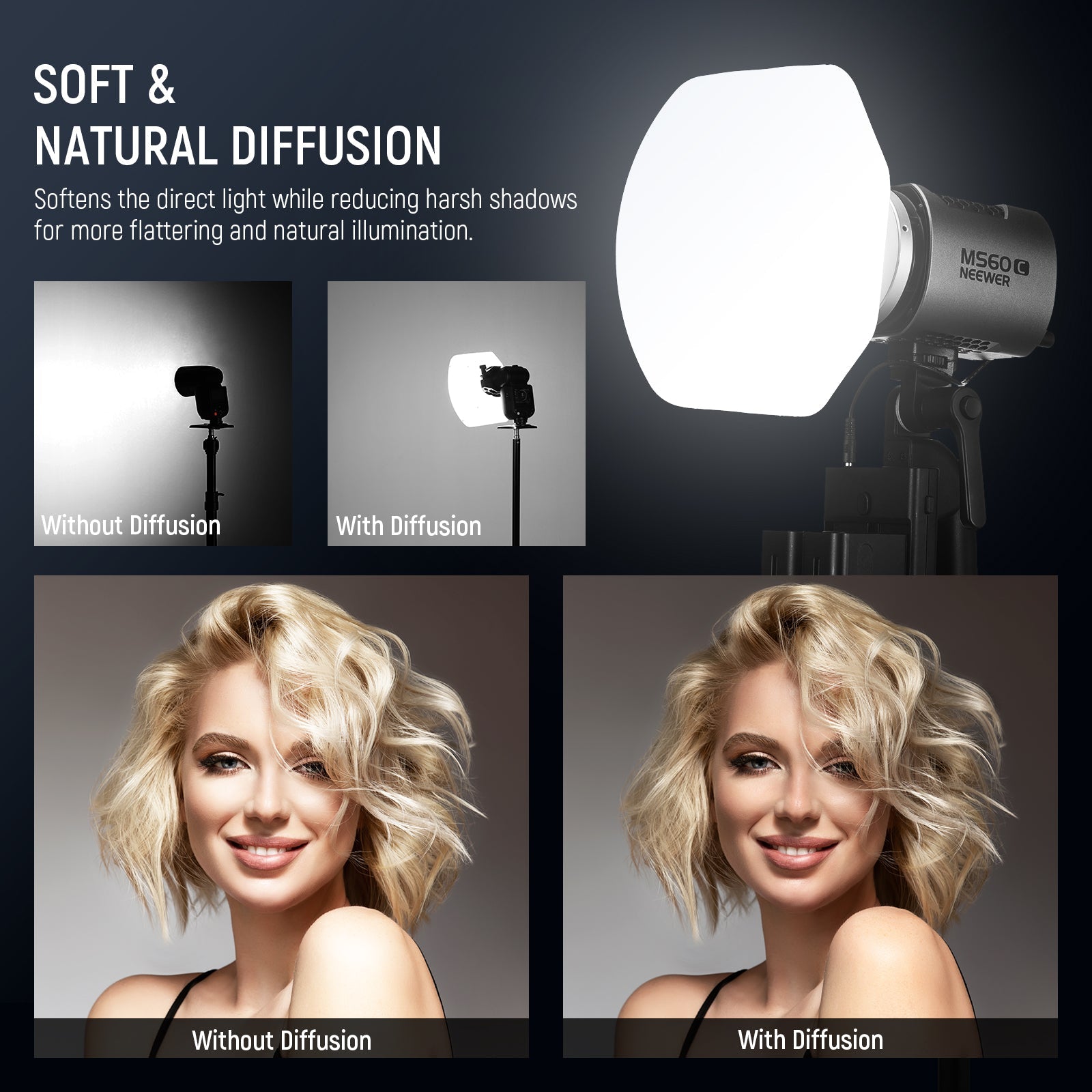 - Lightweight & Foldable- This soft, flexible diffuser soft box can be squeezed into various shapes, and easily packed in a backpack or suitcase for travel. At just 1lb/420g, the skin friendly light modifier is resilient against deformation, scratches, and other potential damages, and is always ready to go
