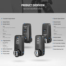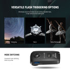 - Versatile Flash Triggering Options- The transmitter features a hot shoe adapter and PC sync socket, while the flash receivers each include a 1/4" hole, hot shoe adapter, studio flash sync socket, and shutter release cable connection port. This allows you to effortlessly mount the receiver on your camera, speedlite flash, or light stand, or connect the transmitter to a personal computer, studio flash, or other devices, for more diverse use