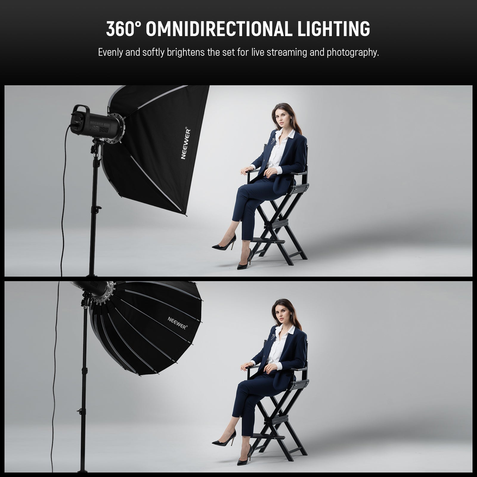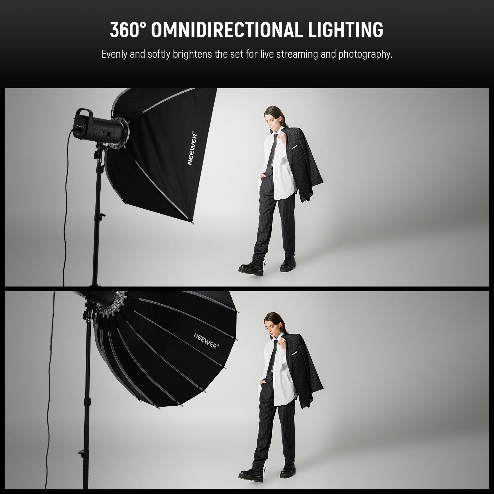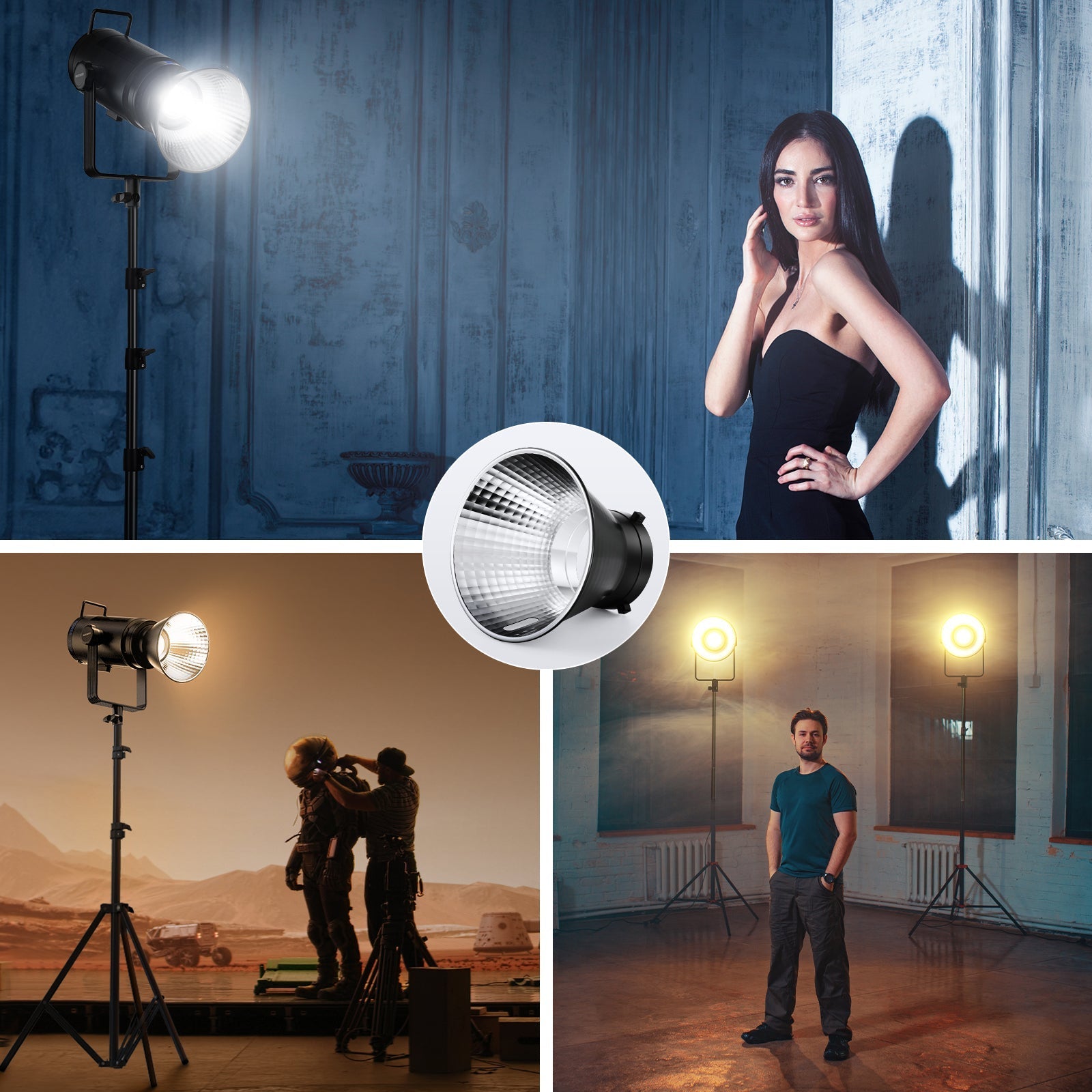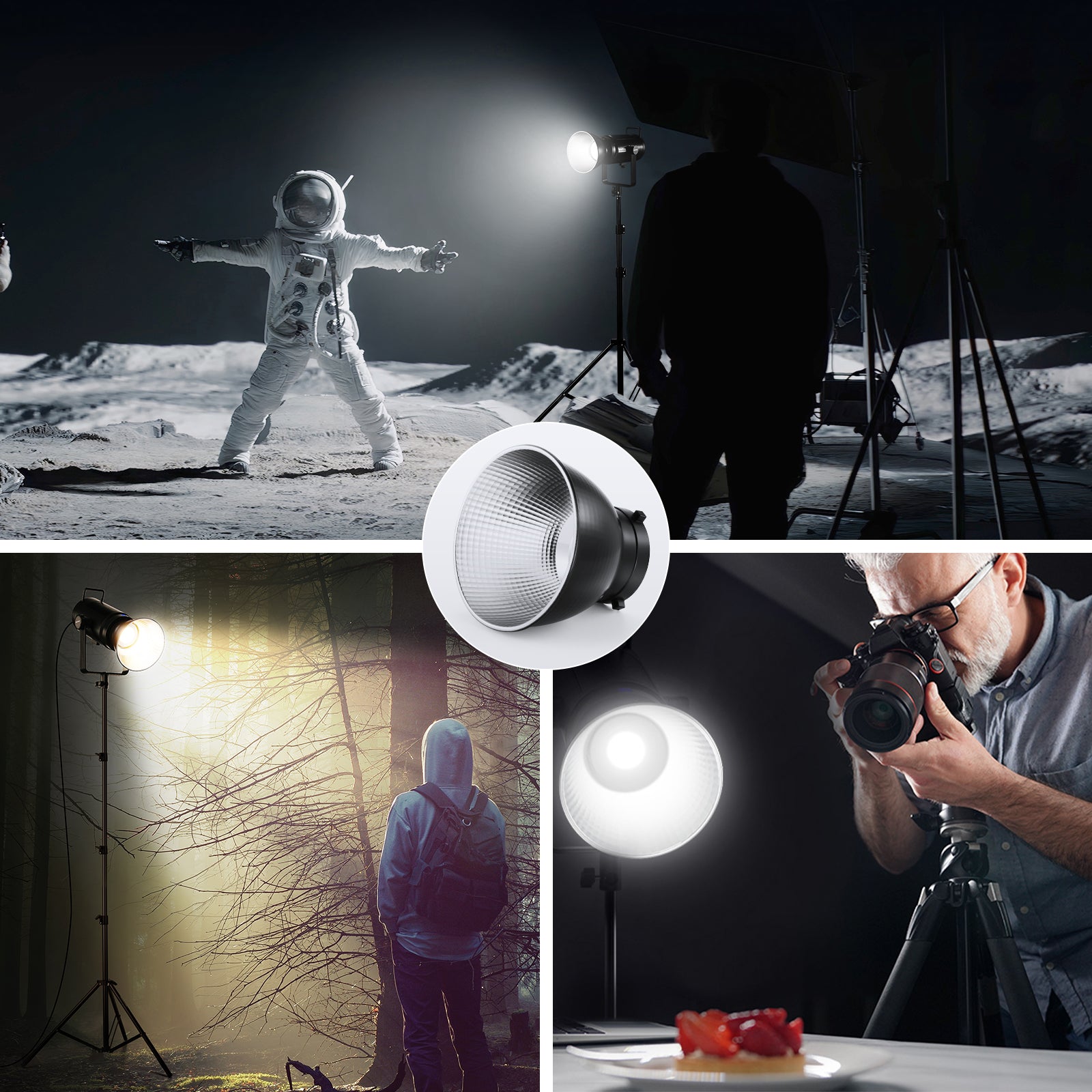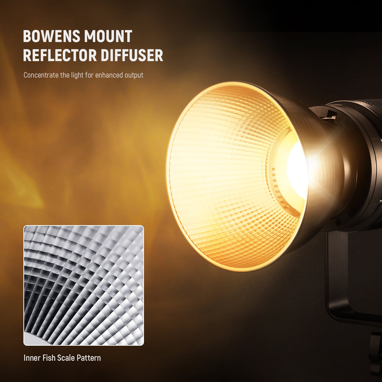 - Quiet Cooling Fan & Standard Bowens Mount- The intelligent cooling system features AUTO & Quiet modes, ensuring efficient heat dissipation to prevent overheating of the lamp body without generating noise to interrupt your process. Our LED video light has a standard Bowens mount for attaching a softbox, reflector, or other light modifying accessories for more professional and soft lighting. The umbrella hole allows the use of an umbrella while attaching the reflector for versatile light control
