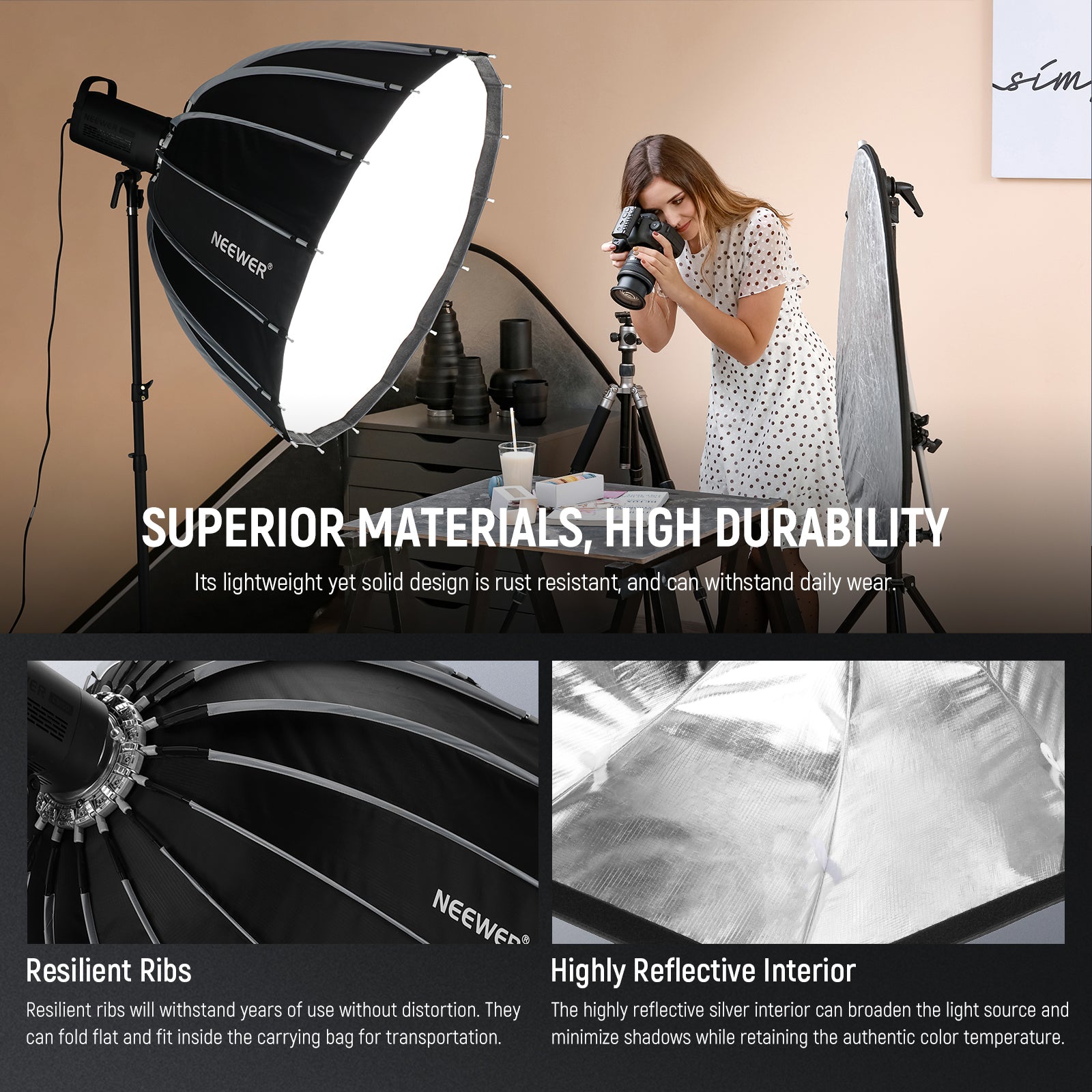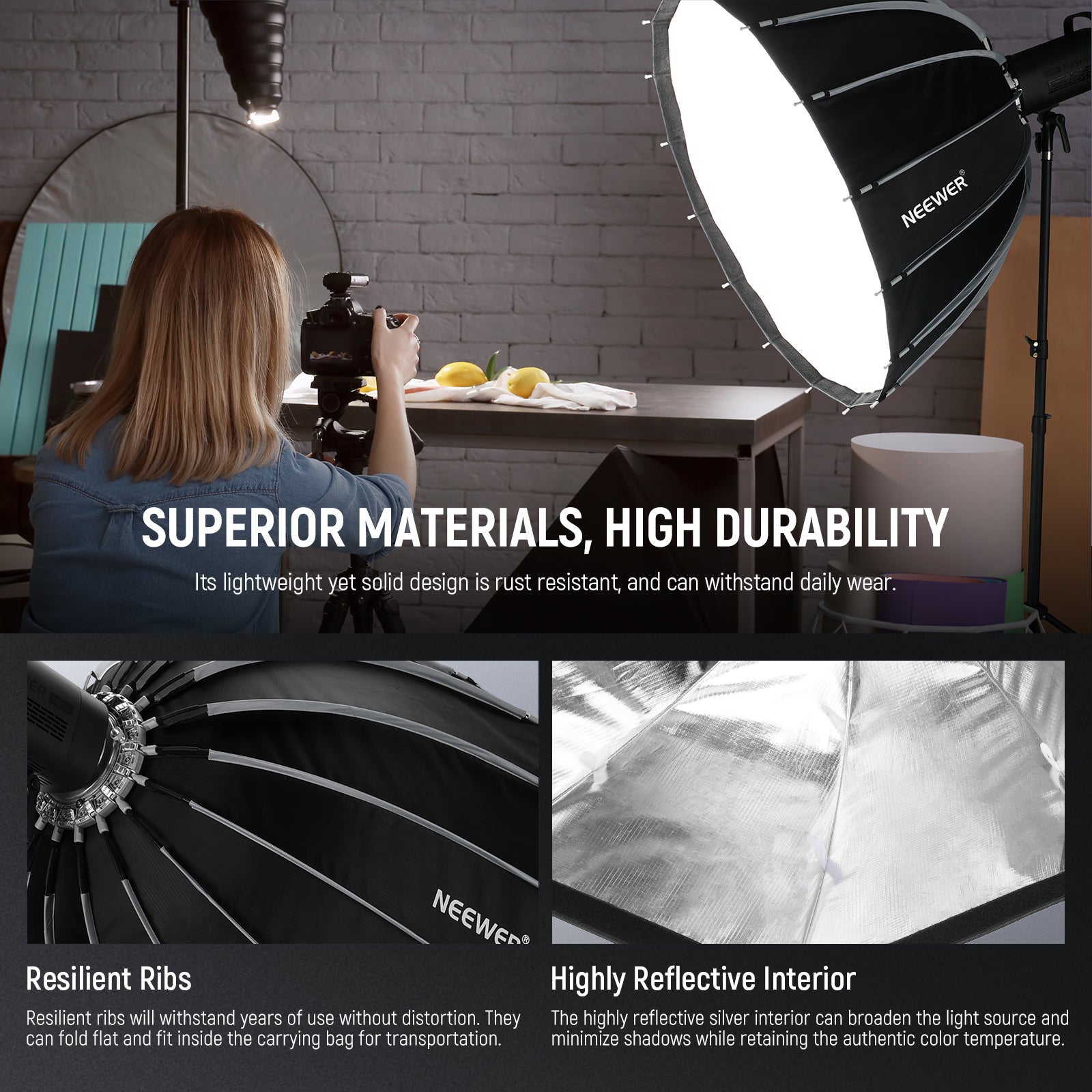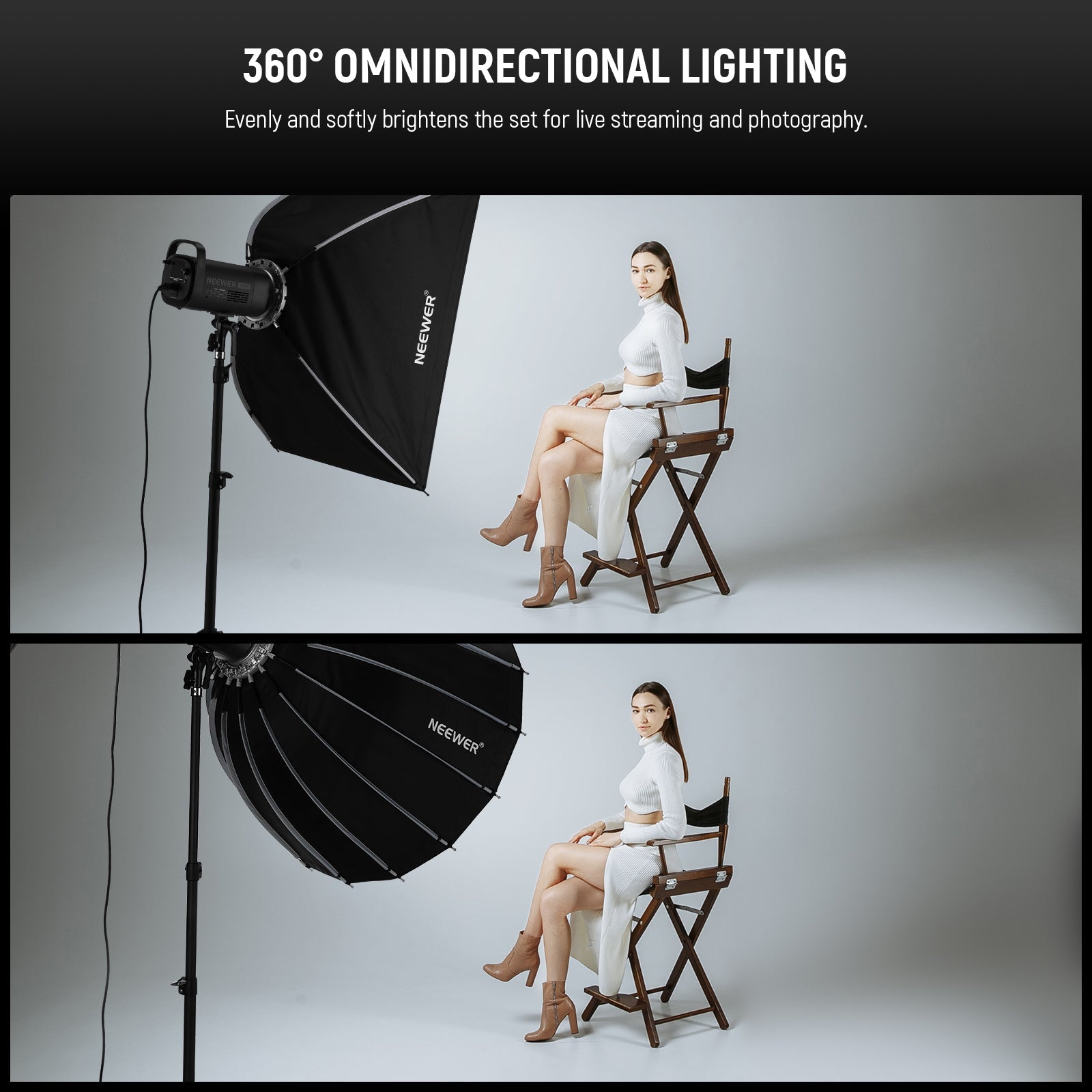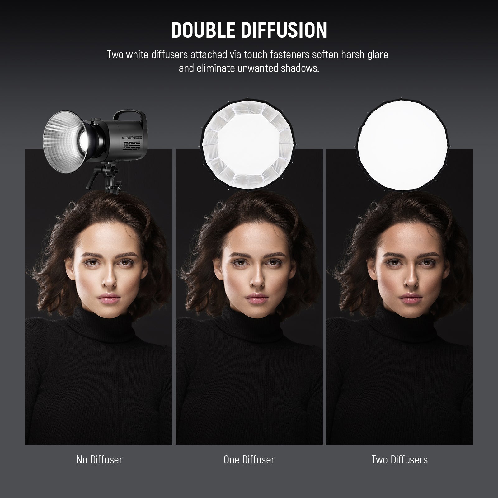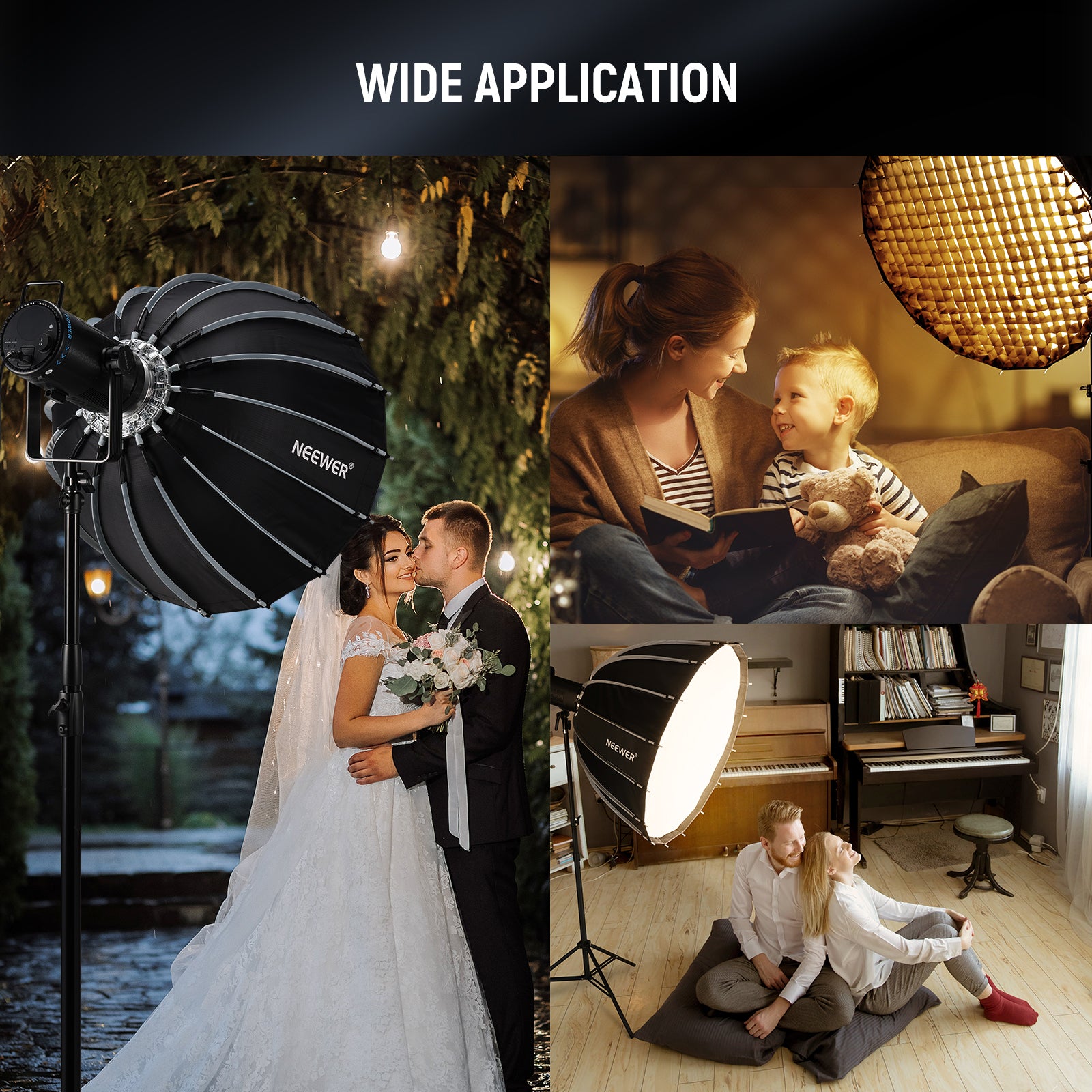 - Quiet Cooling Fan & Standard Bowens Mount- The intelligent cooling system features AUTO & Quiet modes, ensuring efficient heat dissipation to prevent overheating of the lamp body without generating noise to interrupt your process. Our LED video light has a standard Bowens mount for attaching a softbox, reflector, or other light modifying accessories for more professional and soft lighting. The umbrella hole allows the use of an umbrella while attaching the reflector for versatile light control