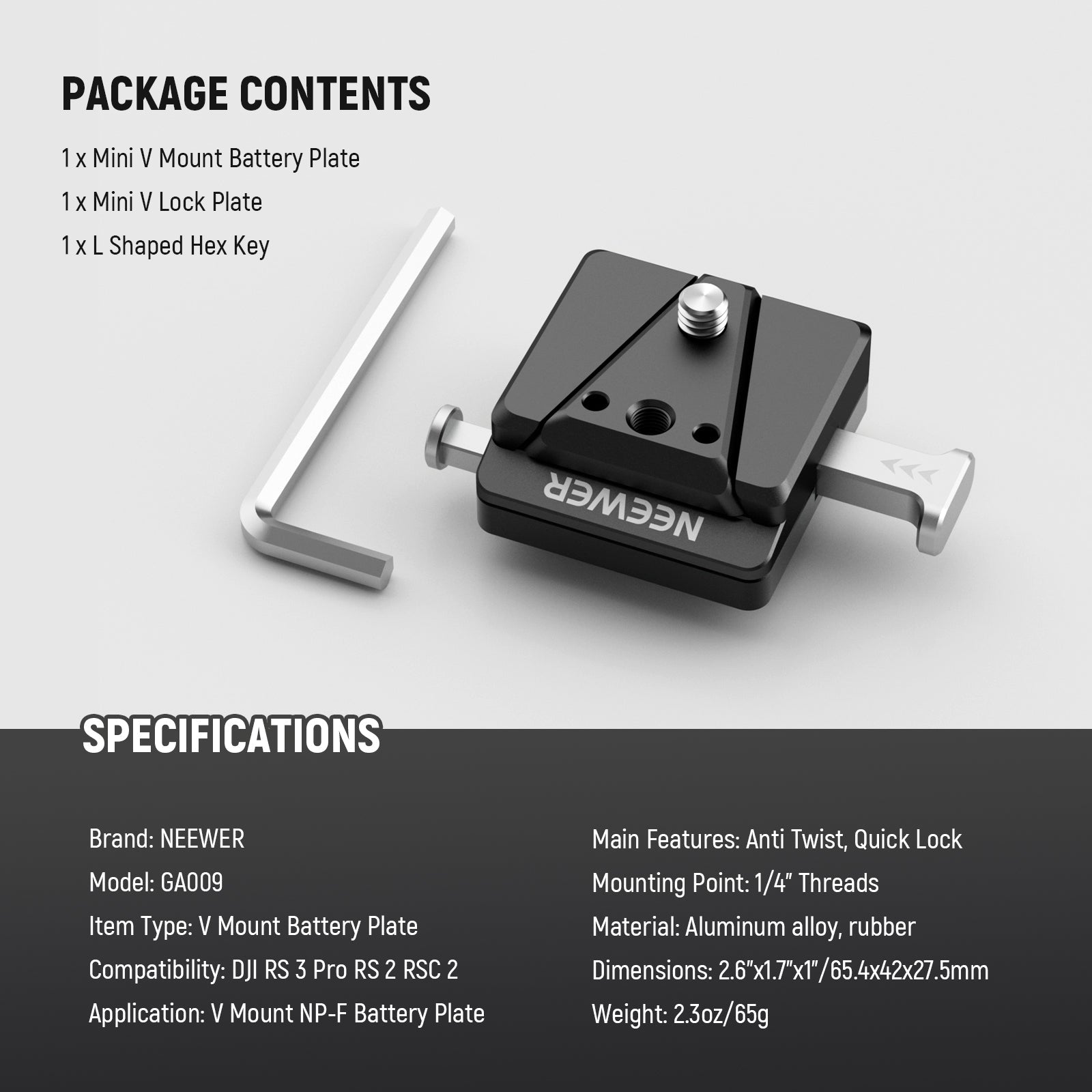 NEEWER GA009 Mini V Mount Battery Plate for DJI RS 2 RSC 2 RS 3