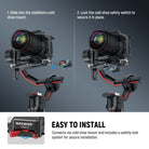 - Gimbal Balance Adjustable Via Detachable NATO Rail- Upgraded with a detachable NATO rail for easy battery center of gravity adjustment, aiding in gimbal balance. The NATO clamp locking lever secures the battery plate at the gimbal's base through the cold shoe adapter on the NATO rail. Simply slide the battery along the NATO rail to achieve optimal gimbal balance