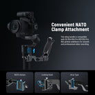 - Convenient NATO Clamp Attachment- The NATO clamp can directly attach to RS4, RS4 Pro, RS 3, RS 3 Pro, and RS 2 gimbals through the built in NATO ports